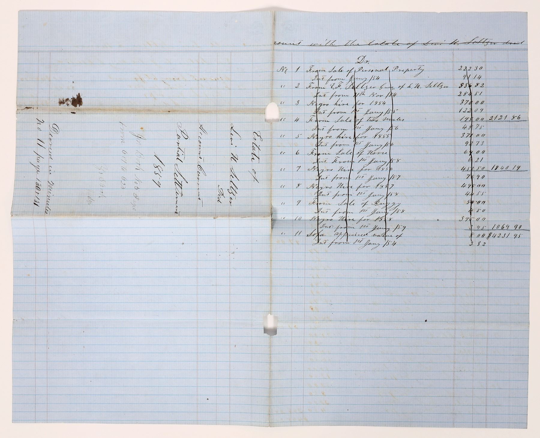This is an 1859 estate settlement for a farmer in Alabama. A bleak time in history is illustrated in the estate inventory that includes assorted slaves (One is valued at $452), mules, horses, a buggy, farm implements and many other items, and people. It's very readable and as I stated previously, shows a very bleak time in our history. Please see photos for more details. Alabama