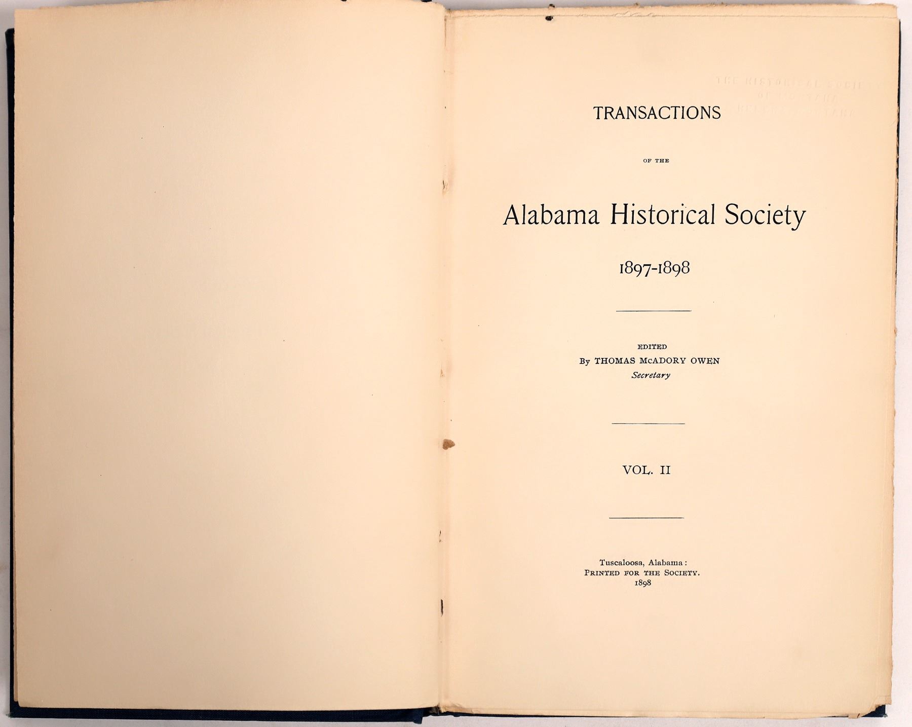 Hardcover, 1898, 204pp with index. State:Alabama City: Date:1898 Provenance: Stuart Mackenzie Montana Ephemera Collection
