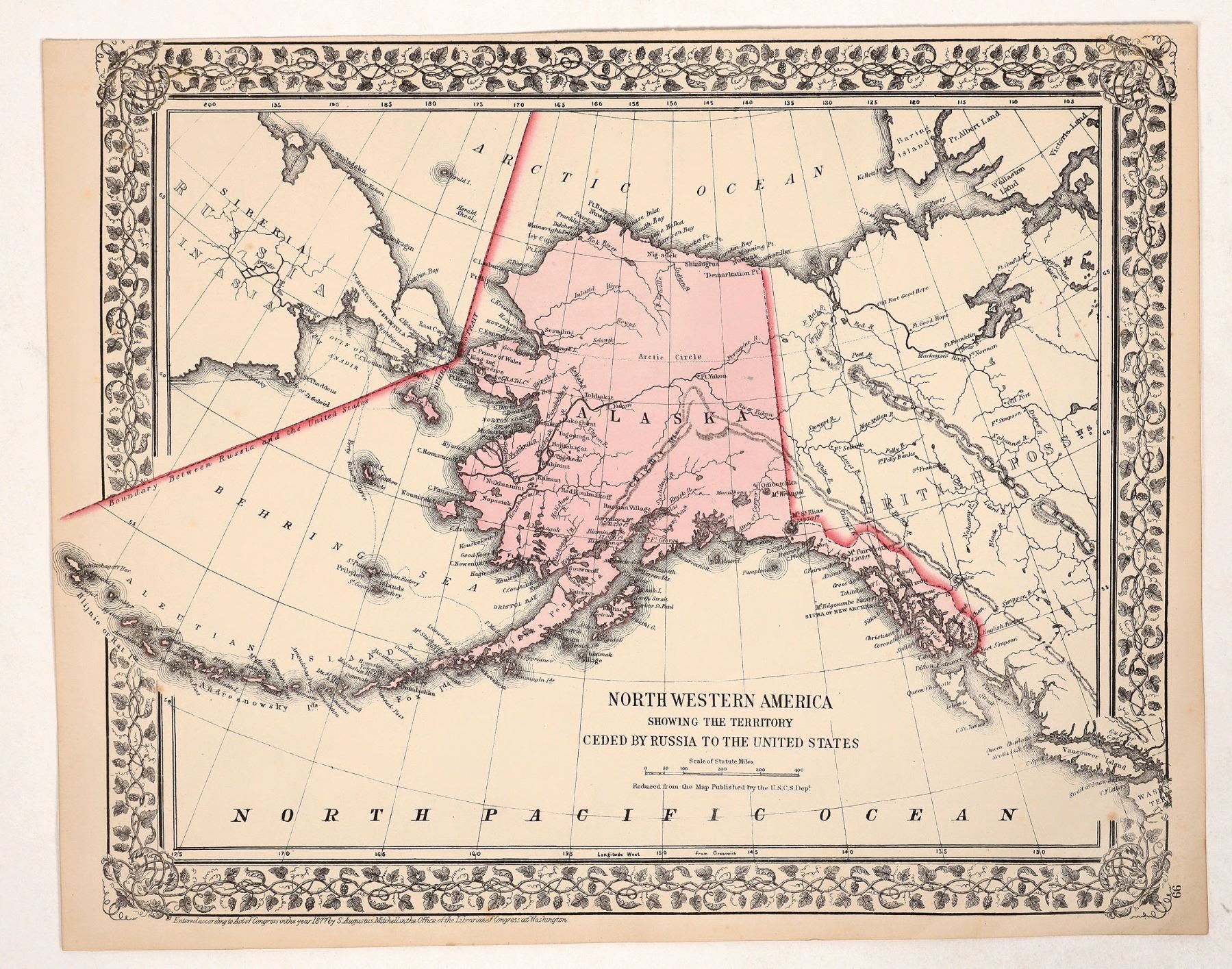 Alaska Map, Mitchell, 1877, 15 x 12", very good.