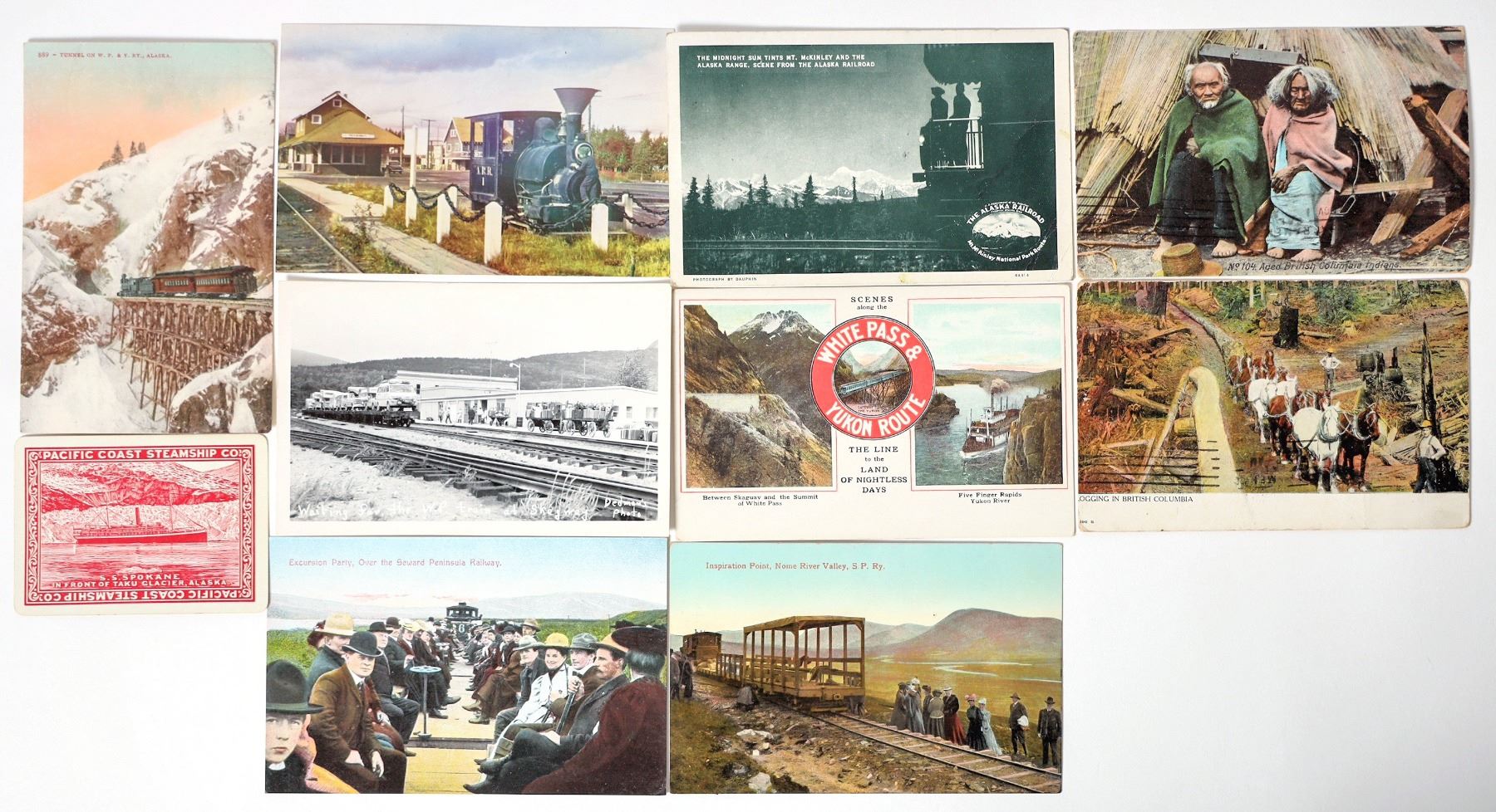 Collection of 10 different postcards from Alaska. Most of them are in a sleeve.