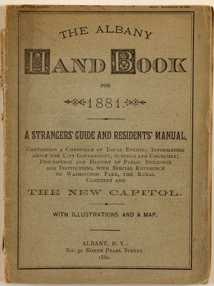 Paperback. Copyright H. P. Phelps. “A STRANGERS' GUIDE AND RESIDENTS' MANUAL, Containing a Chronicle of Local Events; Information ABOUT THE CITY GOVERNMENT, SCHOOLS AND CHURCHES; Description and History of Public Buildings AND Institutions, with Special Reference to Washington Park, the Rural Cemetery and THE NEW CAPITOL! With illustrations and a map.” Includes a chronicle of local events for 1880 (i.e. February 6, The Gang of Fifteen began to agitate the community). Many illustrations. Back cover almost unhinged. A few pages in the middle starting to come loose. Other than that in good shape. 146 pages plus 18 pages of advertising on the back. Advertisements on front and back cover also. [Rarity: iii]City: AlbanyCounty: State: NYDate: