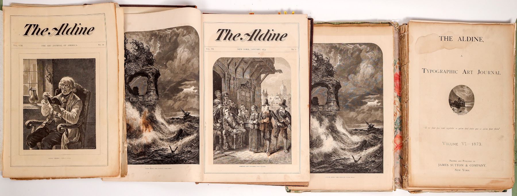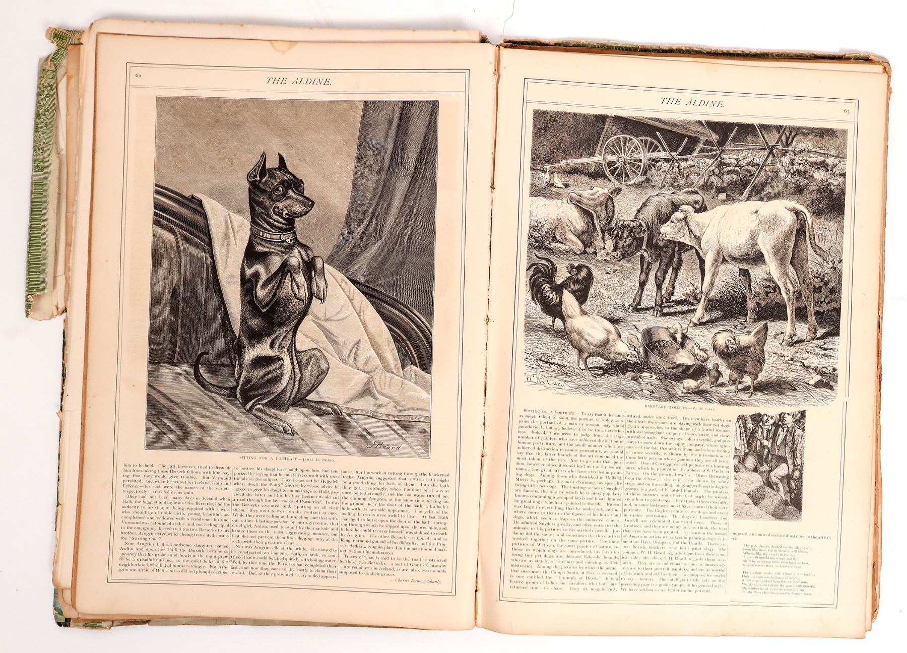 Hundreds of prints in 2+ Aldine's Art Journal, c. 1870's. Nature, portraits, animals etc. 17x12".