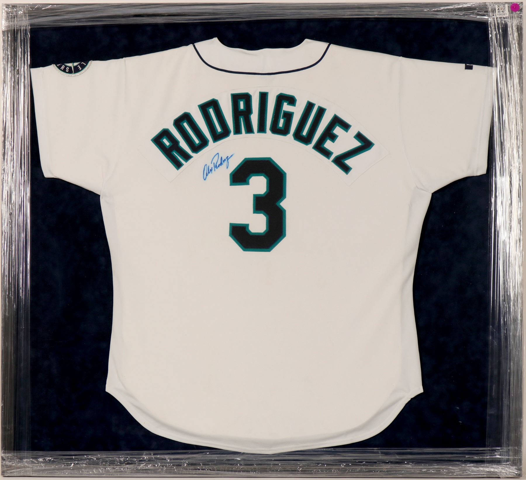This is a signed Seattle Mariners jersey by one and only A-Rod. Alex Rodriguez was a 14x All Star, 2009 WC Champ, 3x AL MVP, and is currently a Shark Tank investor. Comes in beautiful black case; 44 x 1 x 49. Signature in blue ink above his number. Letter of Authenticity included. Letter of Authenticity: # Z97051. JSA: Z97051.