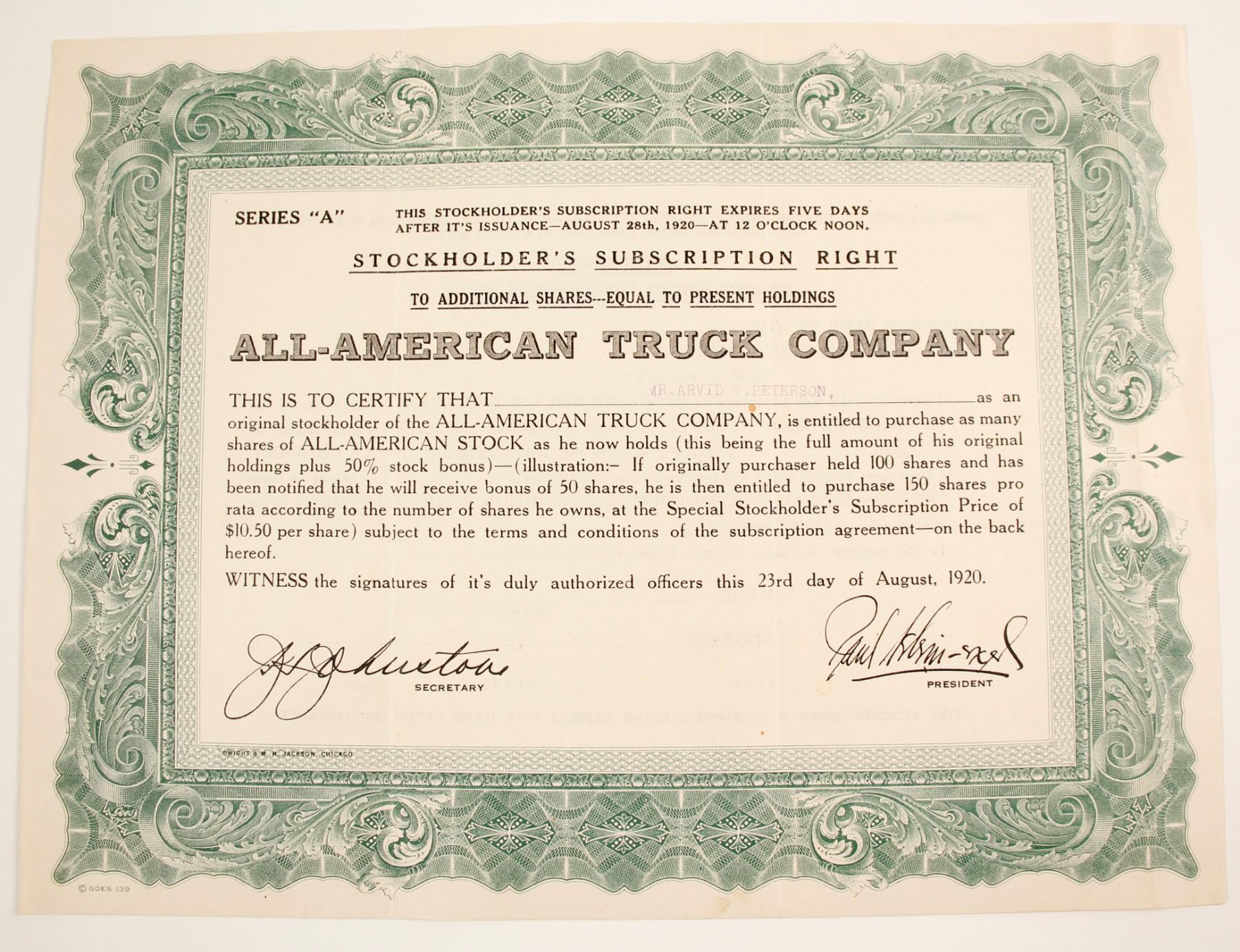 I/U Arvid Peterson, stockholders subscription rights to purchase future stock. City: State: Date: 1920 HWAC# 79873