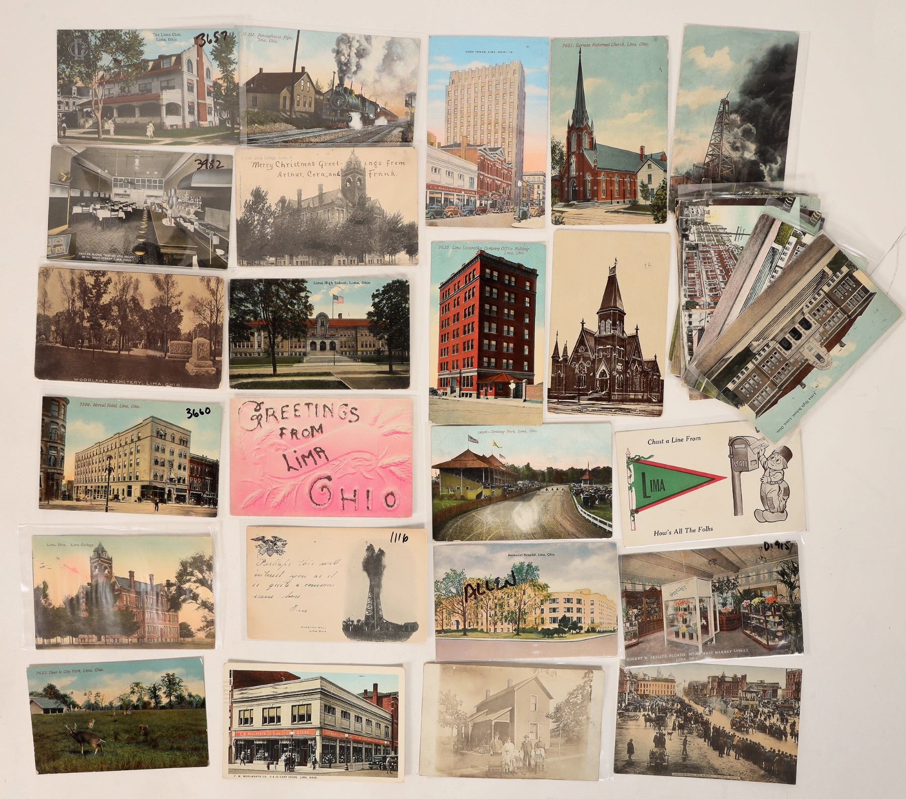 About 34 Lima postcards with 4 RPC's. Court of G A R Honor at night, high school, Memorial Hospital, Woodlawn cemetery, fire apparatus, Lima Club etc.[ Allen County Ohio