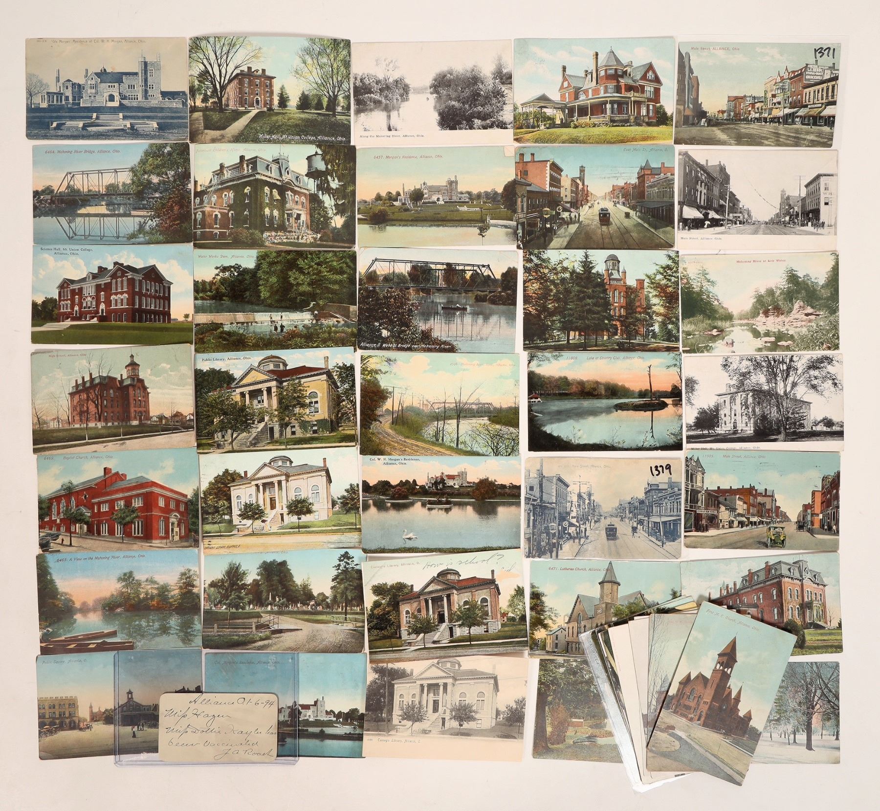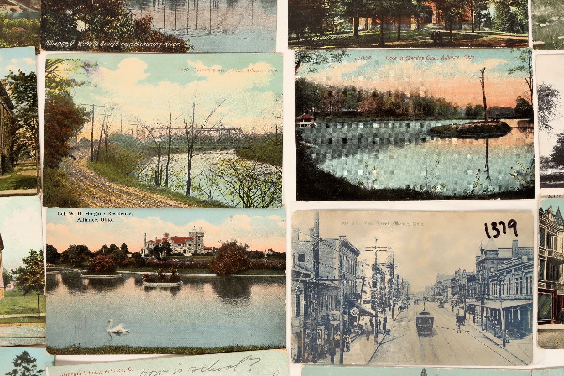 About 45 Alliance postcards. Lutheran church, Carnegie Library, Mahoning River, Main St., W H Morgan residence, Water Works dam, Miller Hall, public square etc.[ Allaince Ohio
