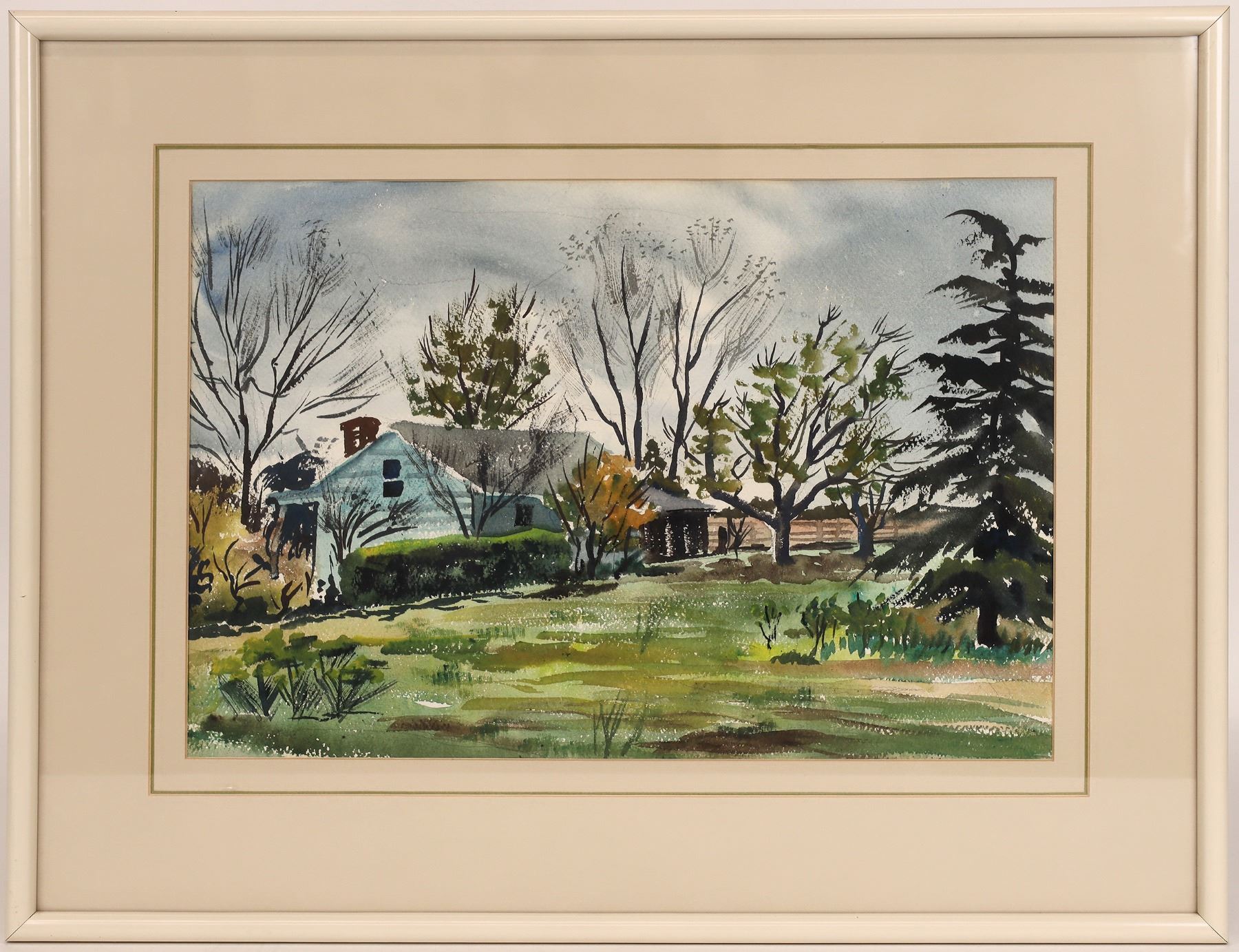 Framed watercolor of a house in Altadena, California.