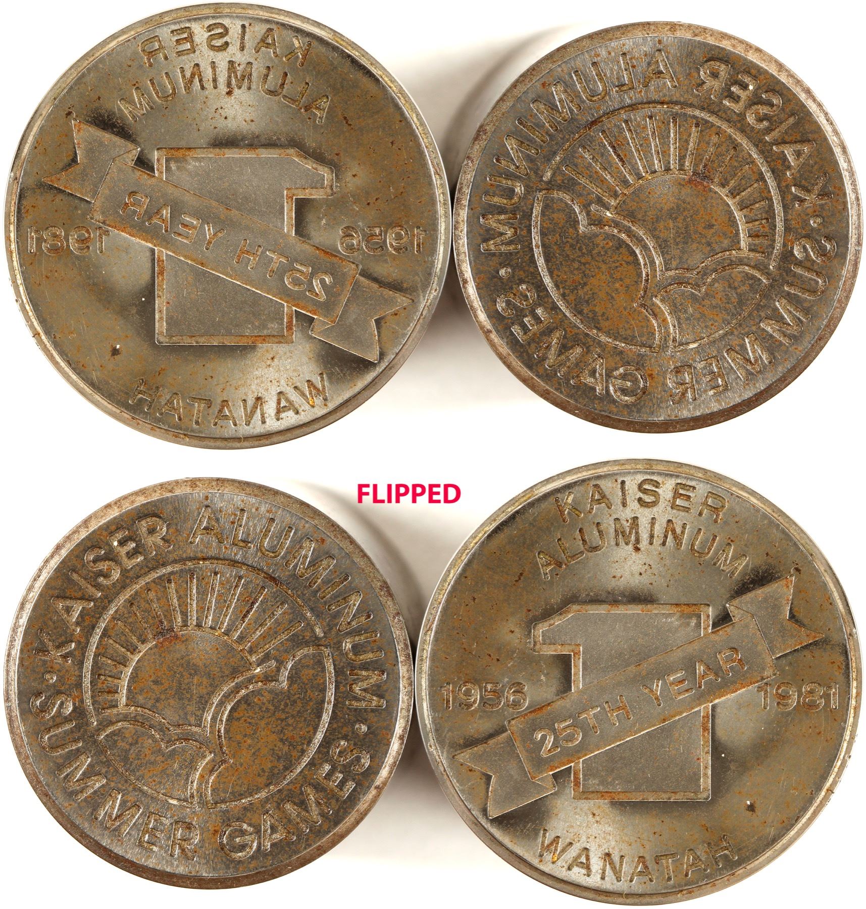 Kaiser Aluminum, Wanatah; 25th year design; 1956-1981 anniversary token die. Kaiser Aluminum, Summer Games; design of sun and clouds. NWT Mint Historical Die Collection. City: State: Date: HWAC# 80027