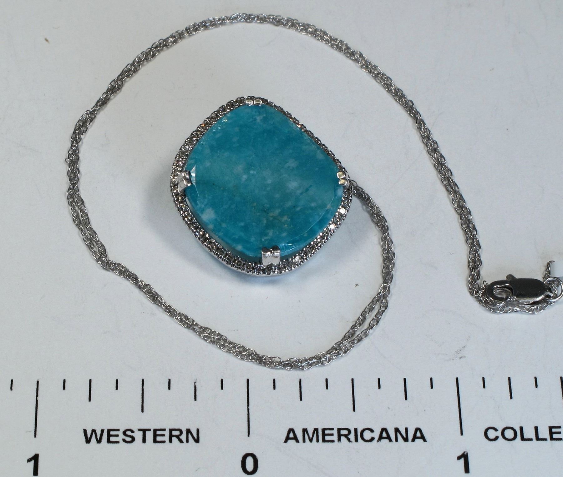 Beautiful ocean blue cut Amazonite pendant (.75") set with a diamond halo (.27c diamonds) for extra sparkle. Must see!