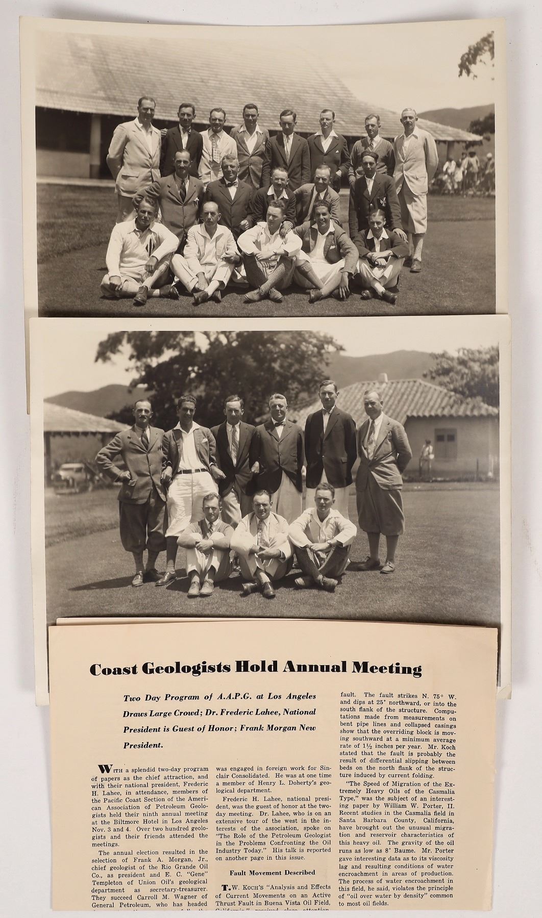 1932 Petroleum World article about 2 day program in Los Angeles, and 2 8x10" group photos. Look at those short baggy pants!