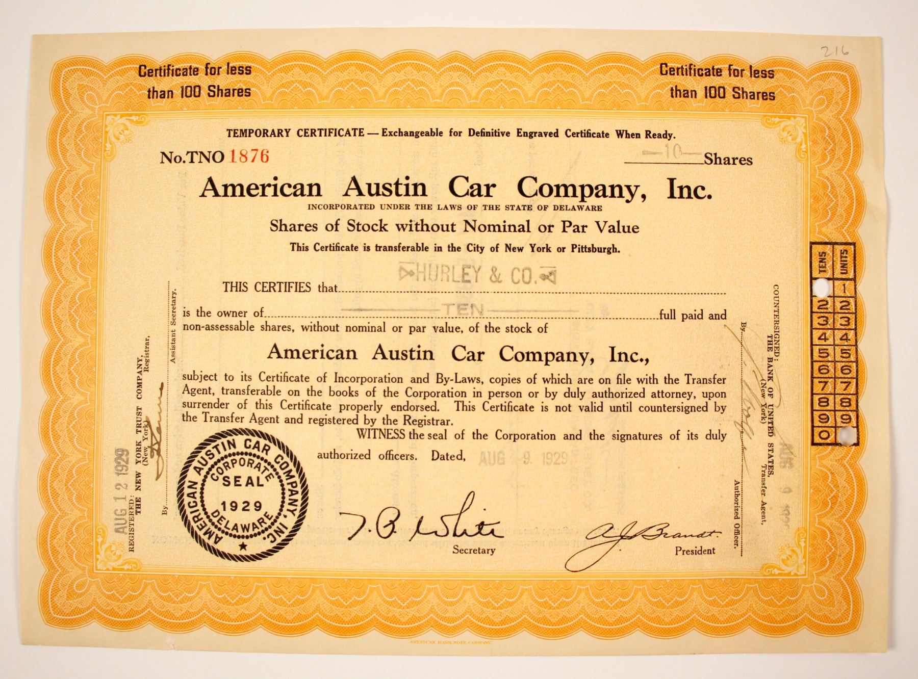 I/U #1876 Hurley & Co 10 shares, 1929. City: State: Date: 1929 HWAC# 79877