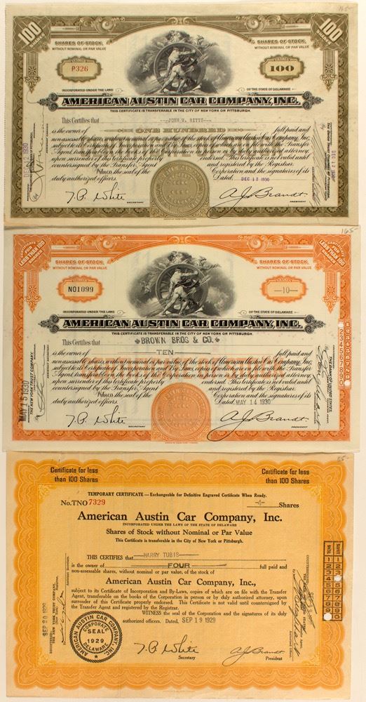 Three certs., 2 shades of orange, 1 gray. City: Pittsburgh State: Pennsylvania Date: 1930 hwac# 22507