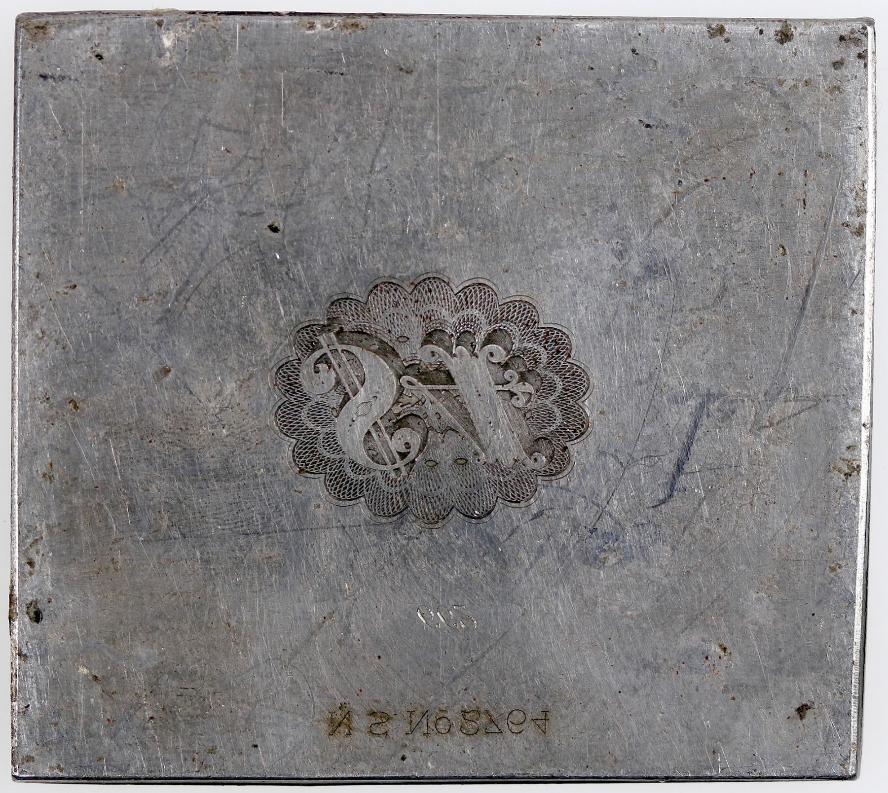 Steel printers plate from the American Banknote Company for use on banknotes or scrip. This plate has the denomination "$4". Identifying marks at top are "N S No 2764" and "662". Reverse has punch marks. Approx. 2.75 x 3"