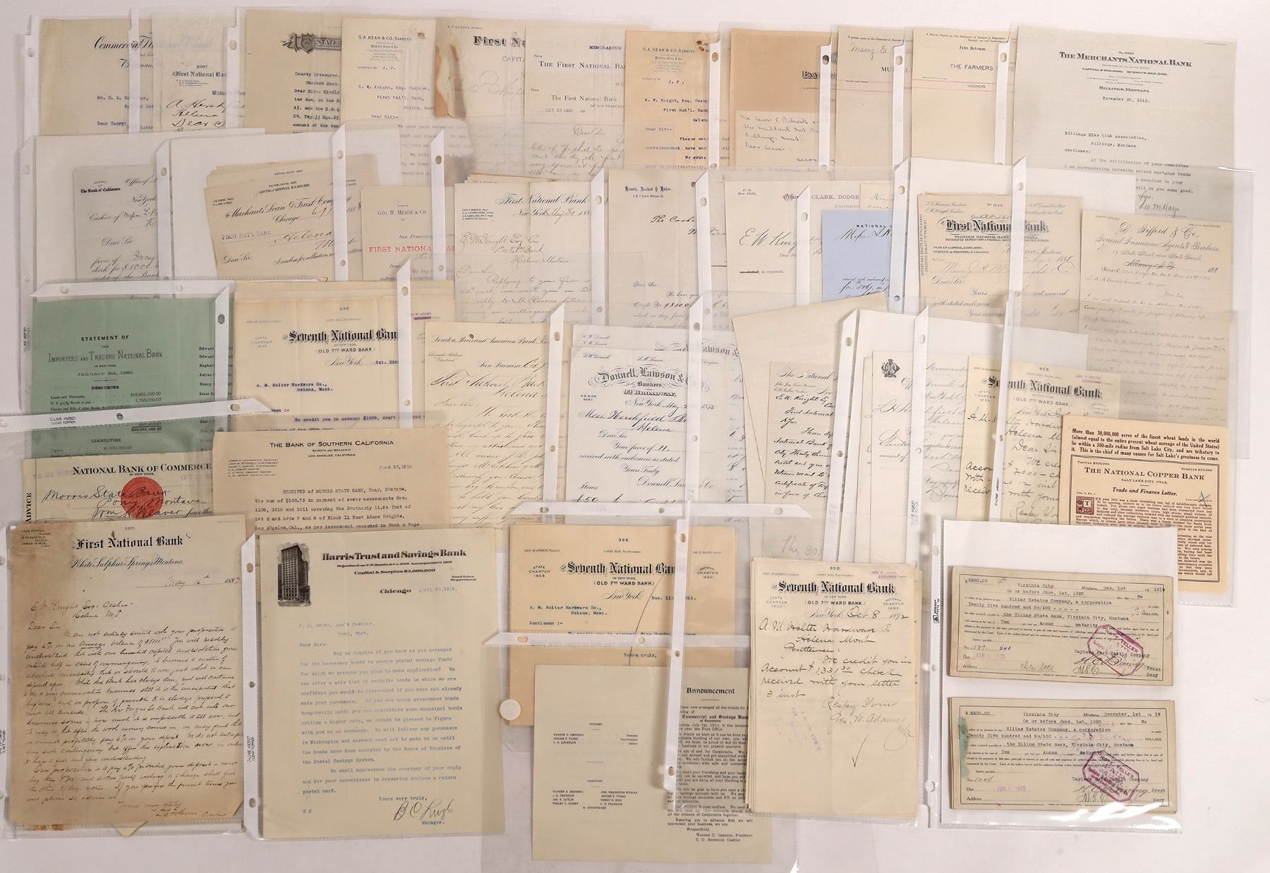 About 100 items in this c. 1885-1924 American banking archive. Mostly Montana, also Chicago, California, Wyoming, New York etc. Letterheads, accounts etc.