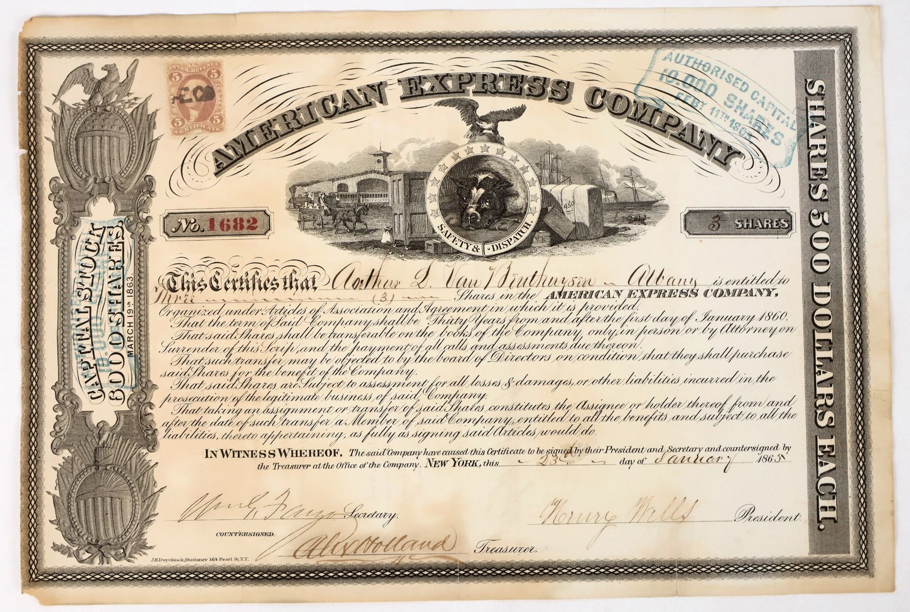 American Express Company Stock Signed by Wells, Fargo, & Holland, 1865 [197972]