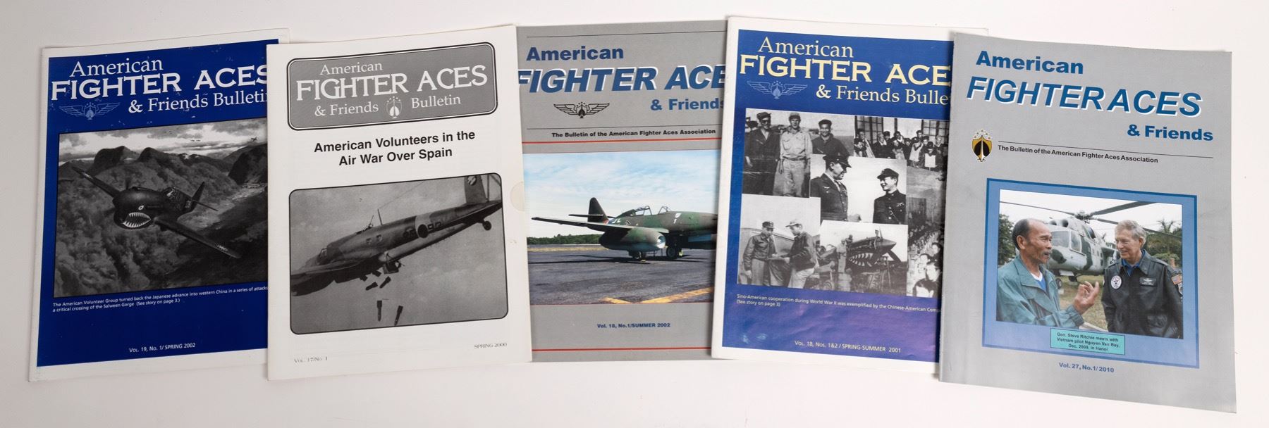 American Fighter Aces & Friends Bulletin, Published Quarterly by the American Fighter Aces Assn., in conjunction with the Museum of Flight in Seattle, WA ~ 60 issues, 2000-2016 Primarily, WWII Navy, Marine & Army Air Force Aces, having five or more victories ~ These magazines cover their exploits & experiences during war, and for the survivors, their present day activities, such as reunions, symposiums, other speaking engagements, etc. ~ Great history and exciting reading! ~ (8 Ω" x 11" SC, approx. 25 pages per issue) State: City: Date: Provenance: