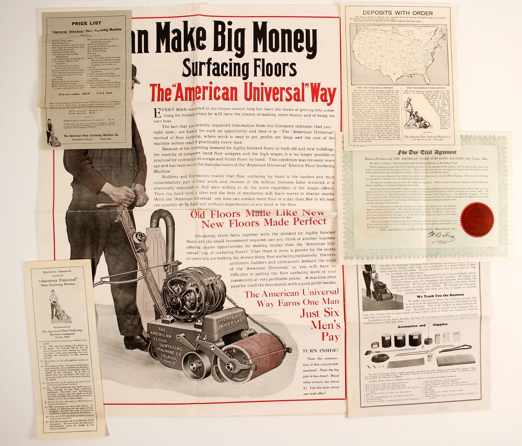 24x19" 4 page broadside with machine image. Crease tears. 3 other company related ephemera