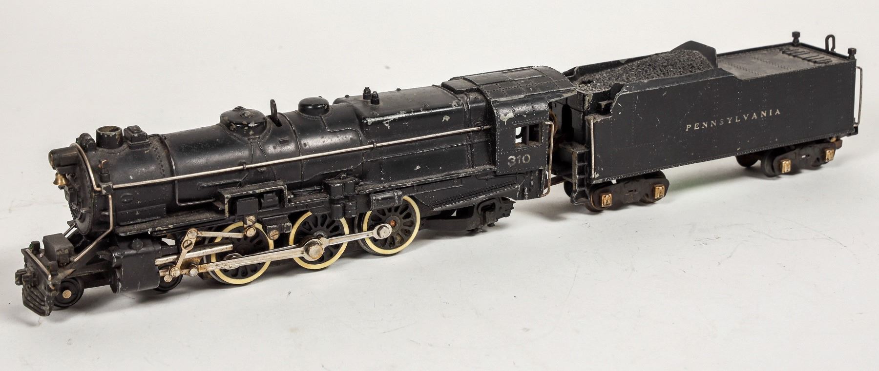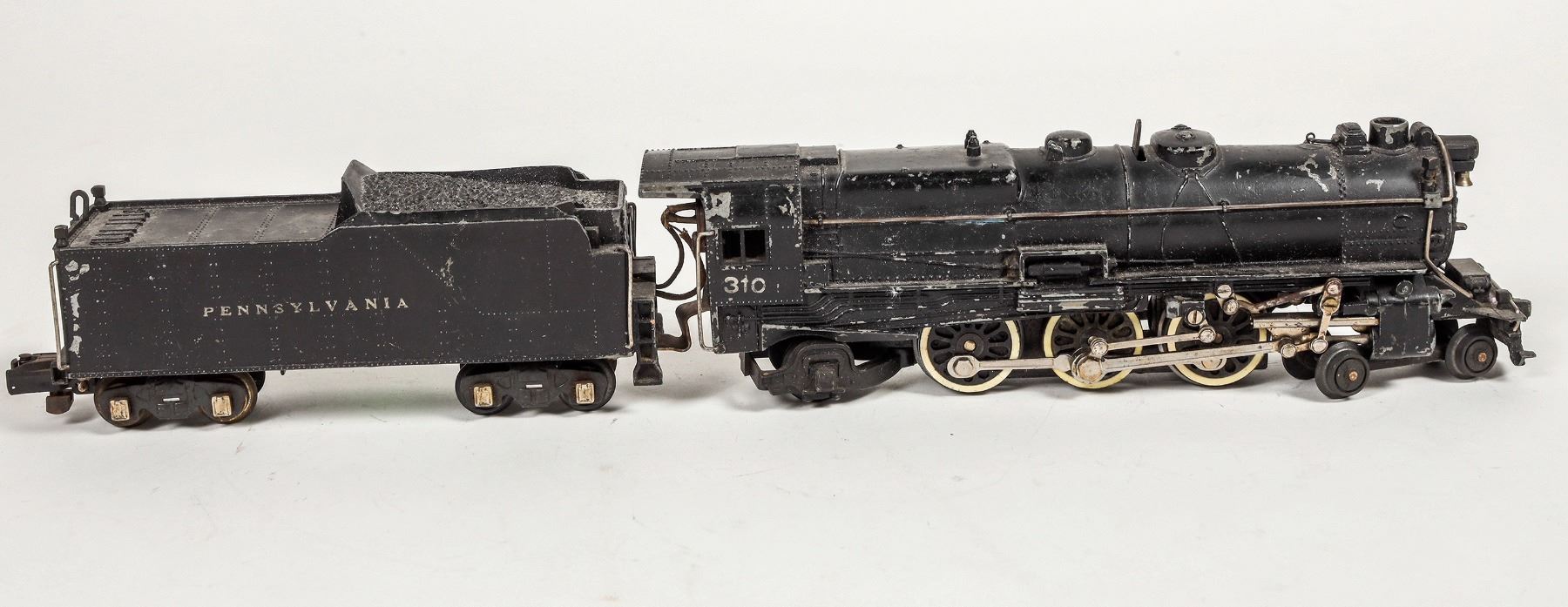 American Flyer 4-6-2 Engine 310 And Tender. "Pennsylvania" graphics readable on tender. Over all condition of body shows some wear. Tested: Light works, motor operated.