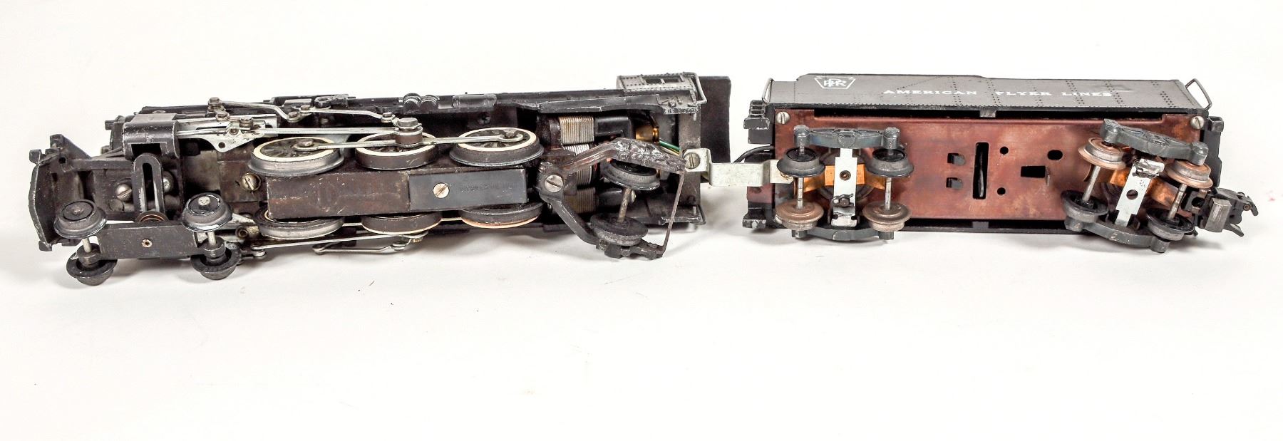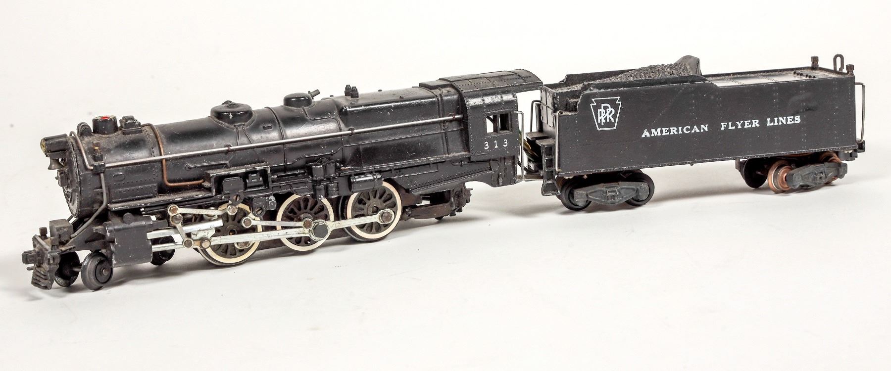 American Flyer 4-6-2 Engine #313 And Tender "PRR" signage, clear. Tested : light works, needs servicing, motor did attempt to operate. No cracks in body over all excellent cond.