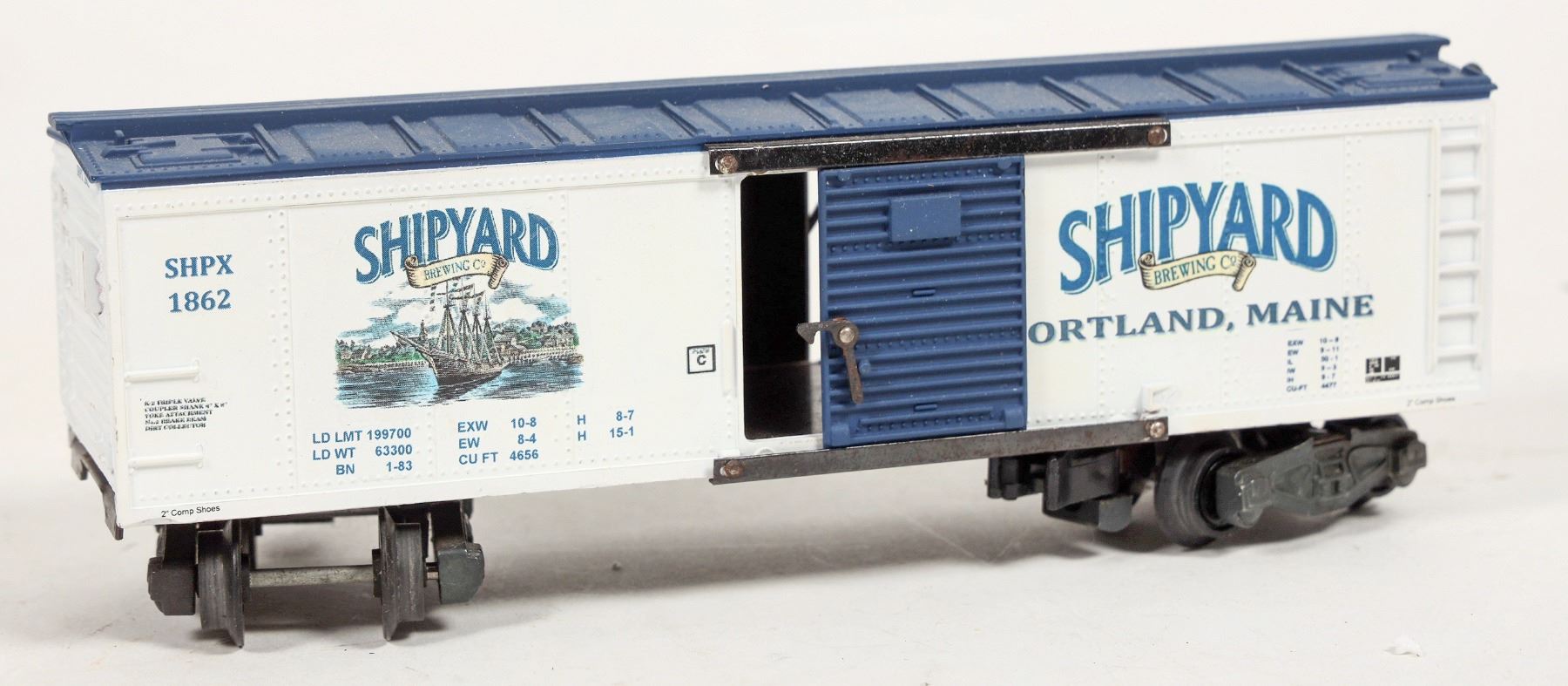 Lot of 2. Limited edition "Shipyard Brewing Co" reefer Portland Maine. C-8 cond. In orig. shipping box. Chesapeake & Ohio 911gondole w/pipe load C-8 cond.