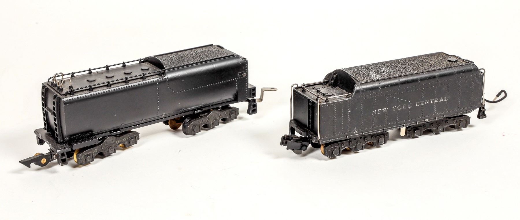 Lot of 2. Two AMerican Flyer tenders w/6 wheel trucks. Match up to 332 locomotive or similar. One has no markings and is neat new condition. 2nd unit is marked "New York Central", graphics are slightly worn. Unit was tested : smokes ( a lot) and has clear "chugging" sound.