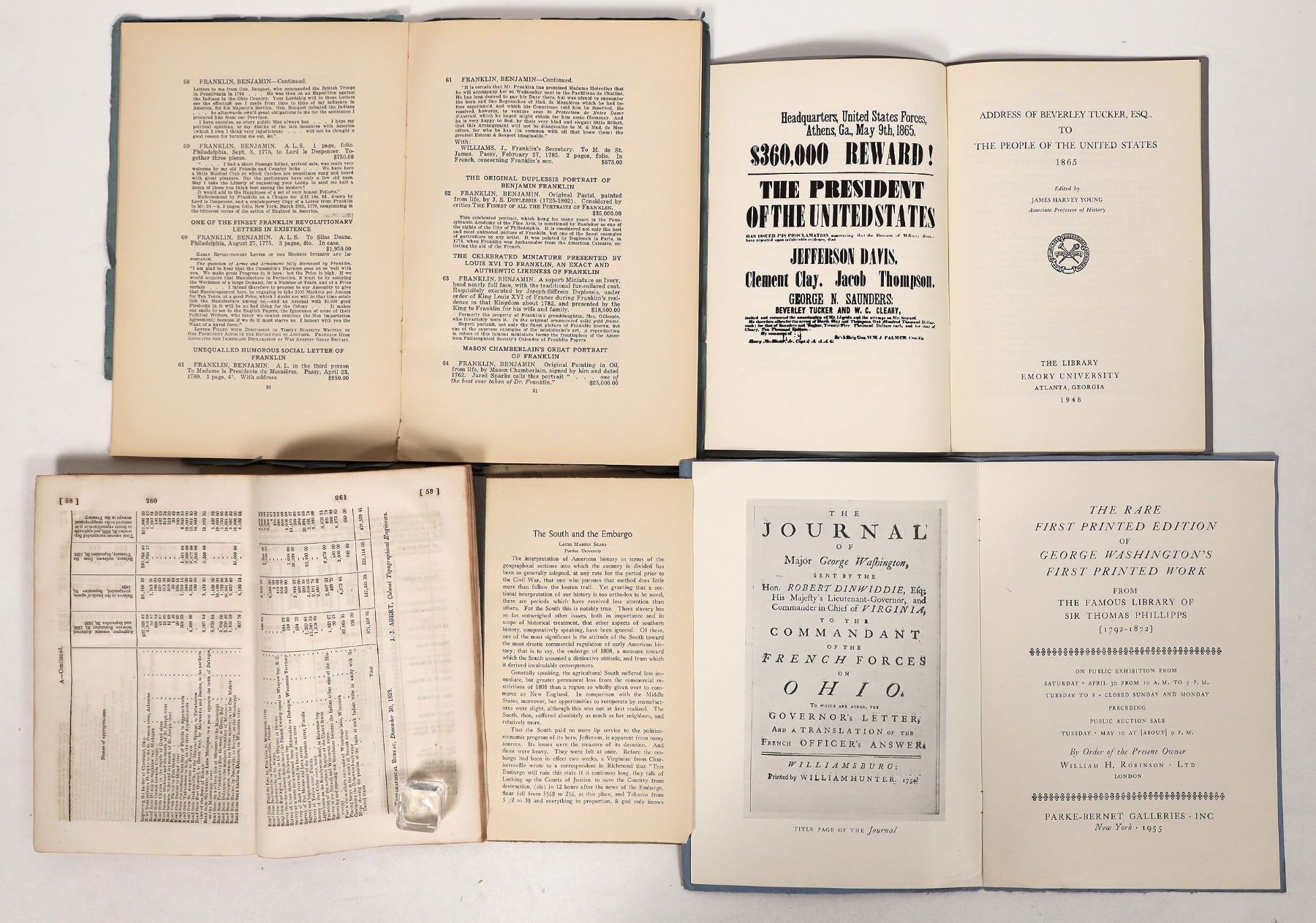 This collection of pamphlets and articles were written between 1900 and 1910, 1929, 1865. The pamphlet "George Rogers Clark and the Revolution in Illinois 1763-1787" 96 pp.; The Virginia Gazette 1774 three issues "open to all PARTIES but influenced by NONE" (be prepared to read your hard s's with f's); "Address to the People of the United States" by Beverly Tucker 1865 on Lincoln's assassination 32pp.; "1776 Americana letters and documents relating to the Declaration of Independence and Revolutionary War", 1926. (This is a catalog of important letters on democracy; "Struggle Against Tyranny, and The Beginning of a New Era Virginia 177-1699" by Richard Morton 78 pp. Articles of political position toward Mexico, 1814. Allies with France prior to the Civil War 1850s. Over a dozen articles relating to politics shaping the country. Please see photos for details. There is President Van Buren's message to congress in 1840 addressing expansion and national security.