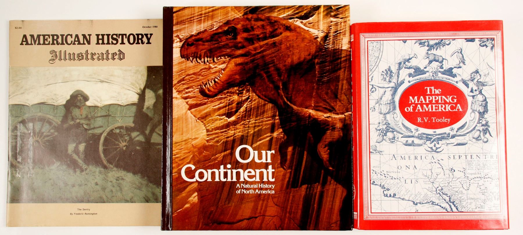 2 hardcovers-The Mapping of America by Tooley, Our Continent by National Geography. American History Illustrated October 1980.
