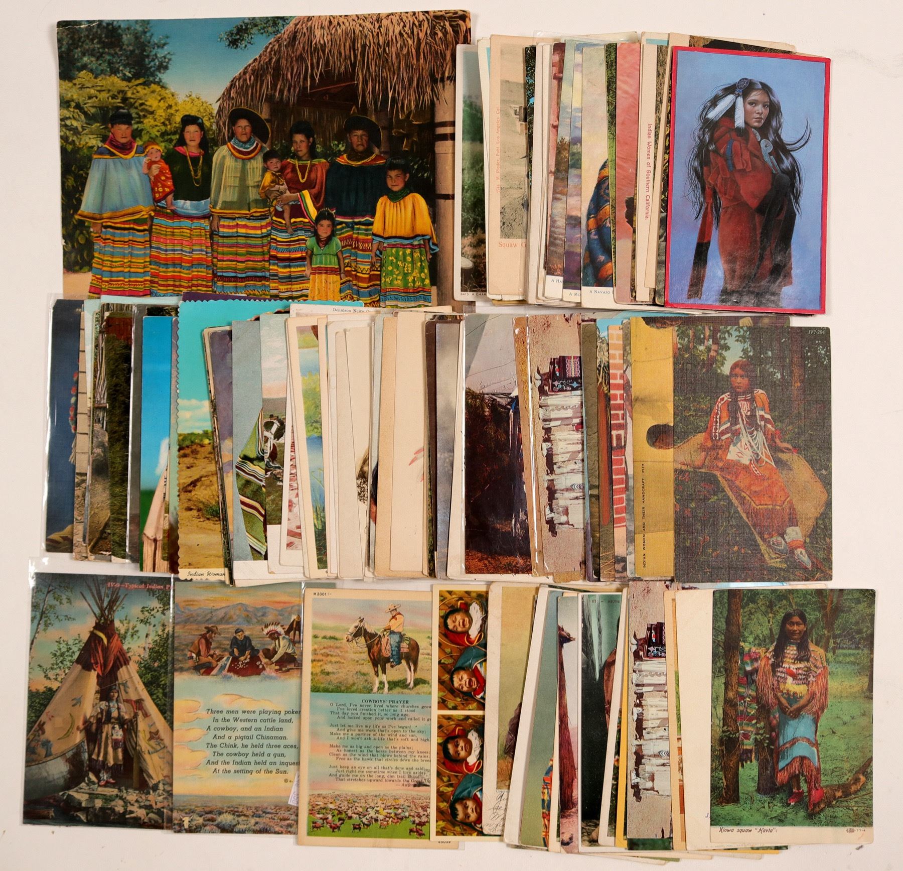 Over 100 different postcards with American Indian maidens, princesses and squaws. All regions are represented with many tribes. Ranging from 1906 - modern times with many early cards. These are rare and collectible.