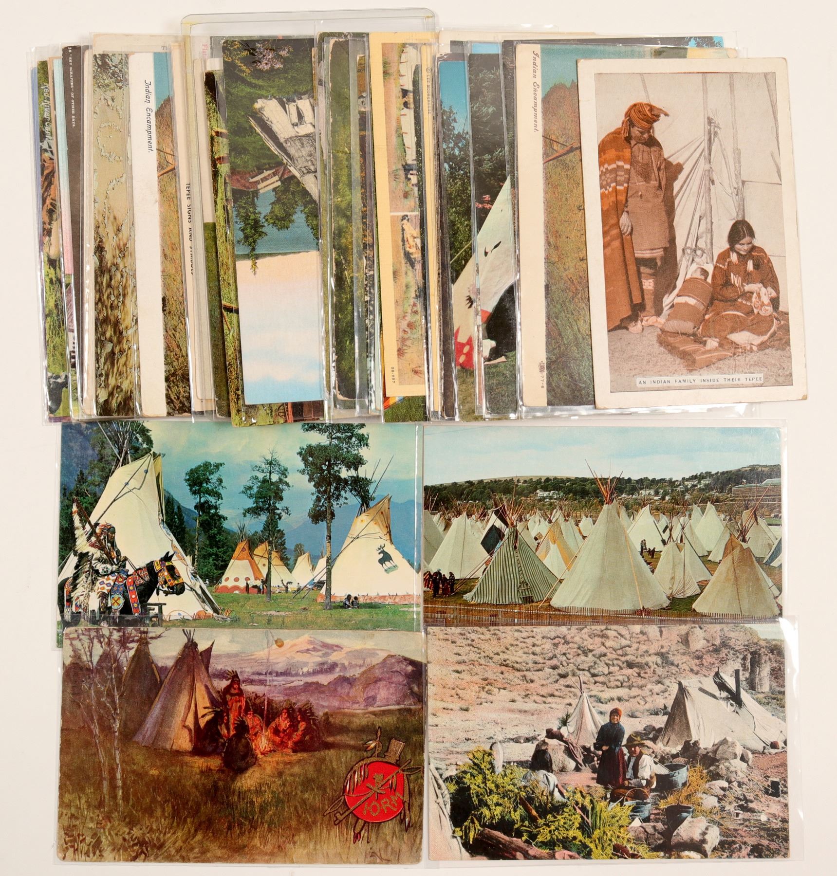 45 postcards from across the country representing American Indian Tee Pees from 1906 - modern. Brian Thaler Collection