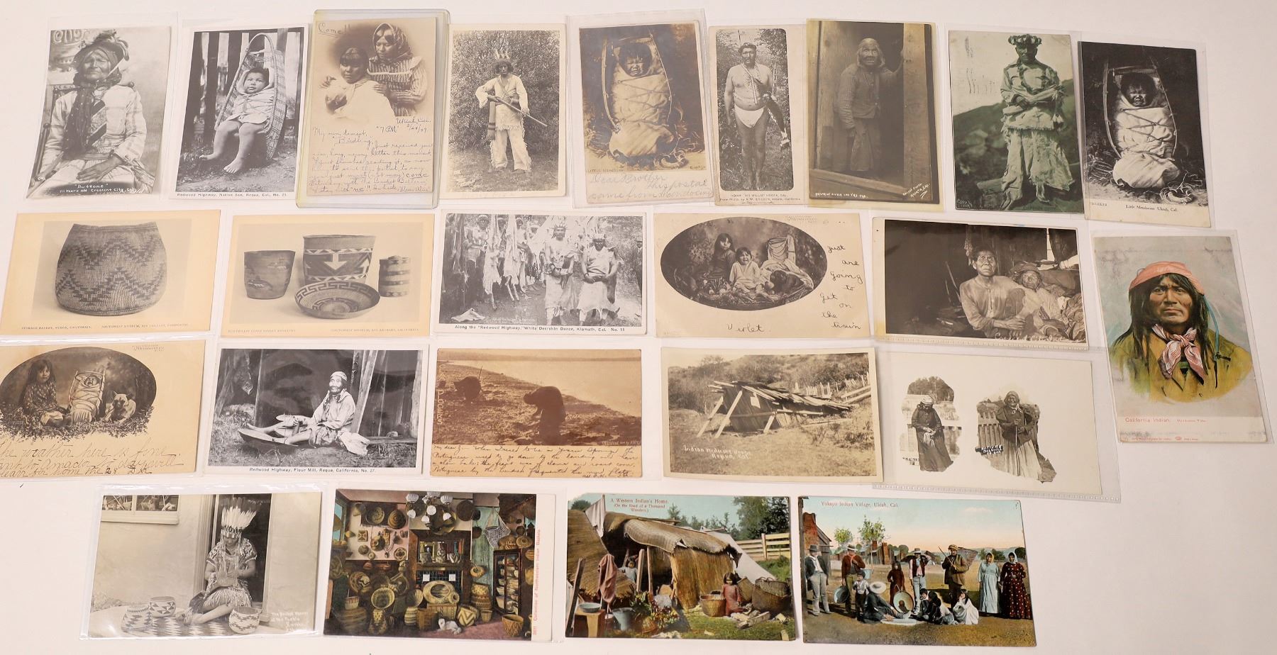 A collection of 24 RPC's featuring California Indians. Included are cards showing peoples from Amador County, Eureka, Ukiah, Crescent City, Arcata and more. Some are used, some written on. These are all in very good condition. Please see photos for more detail and condition.