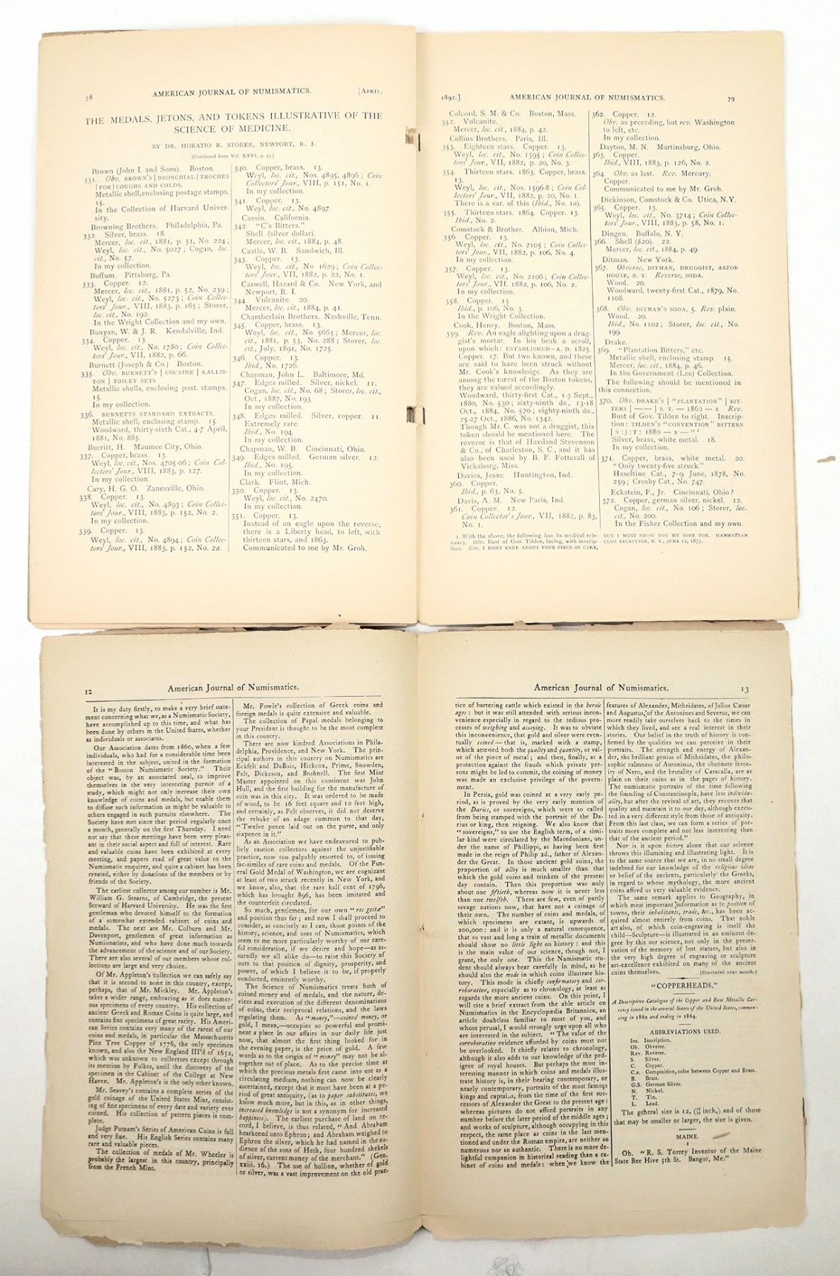 Vintage numismatic publications: 1) American Journal of Numismatics: three issues: June, July and August of 1866. About five pages each; 7 x 11 inches. 2) American Journal of Numismatics, April 1892; about 20 pages; 7 x 11 inches.
