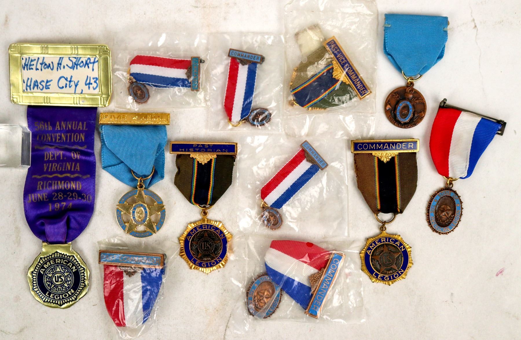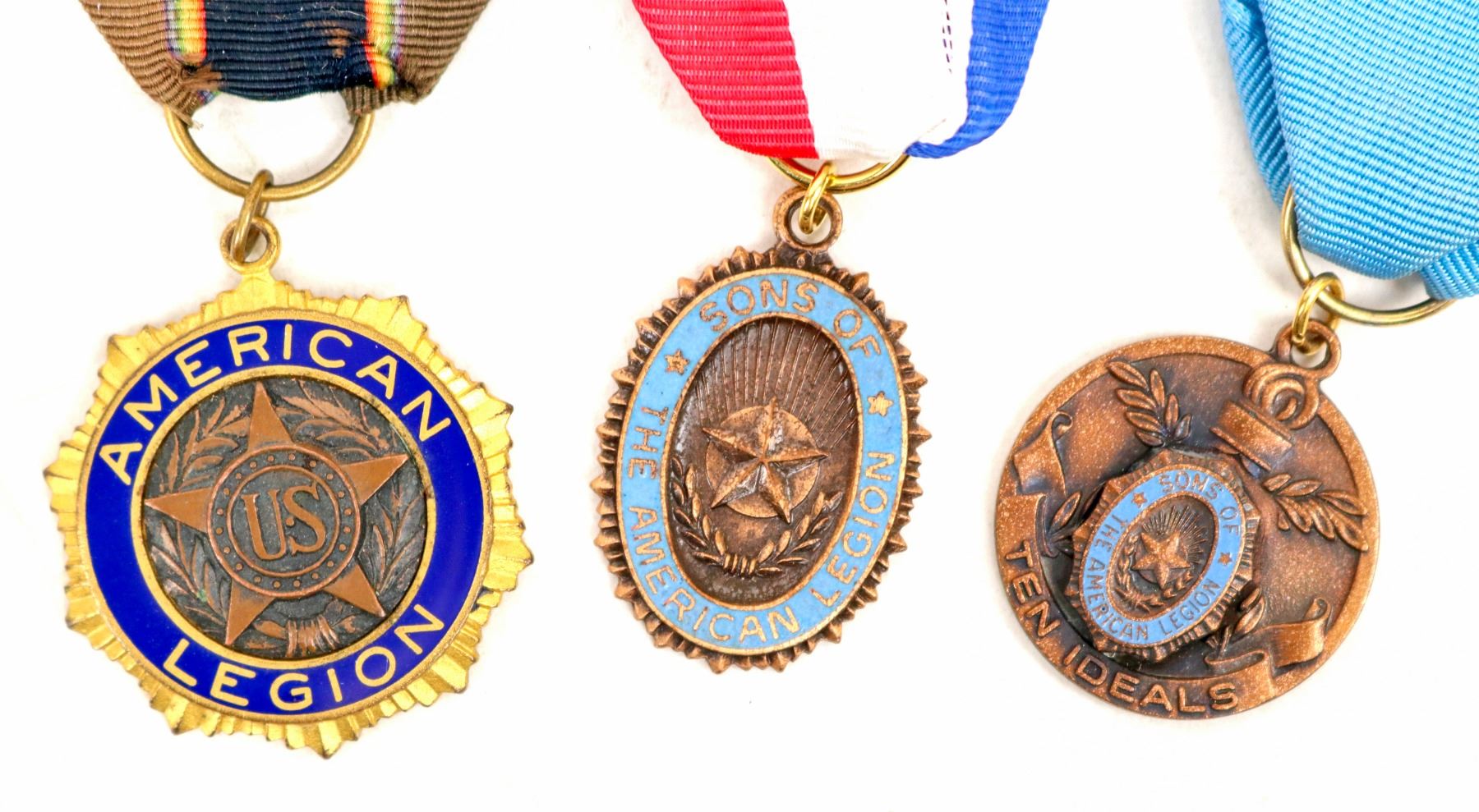 Lot of 12. Various medals and breast ribbons of the American Legion, some in protective plastic. Very good condition.
