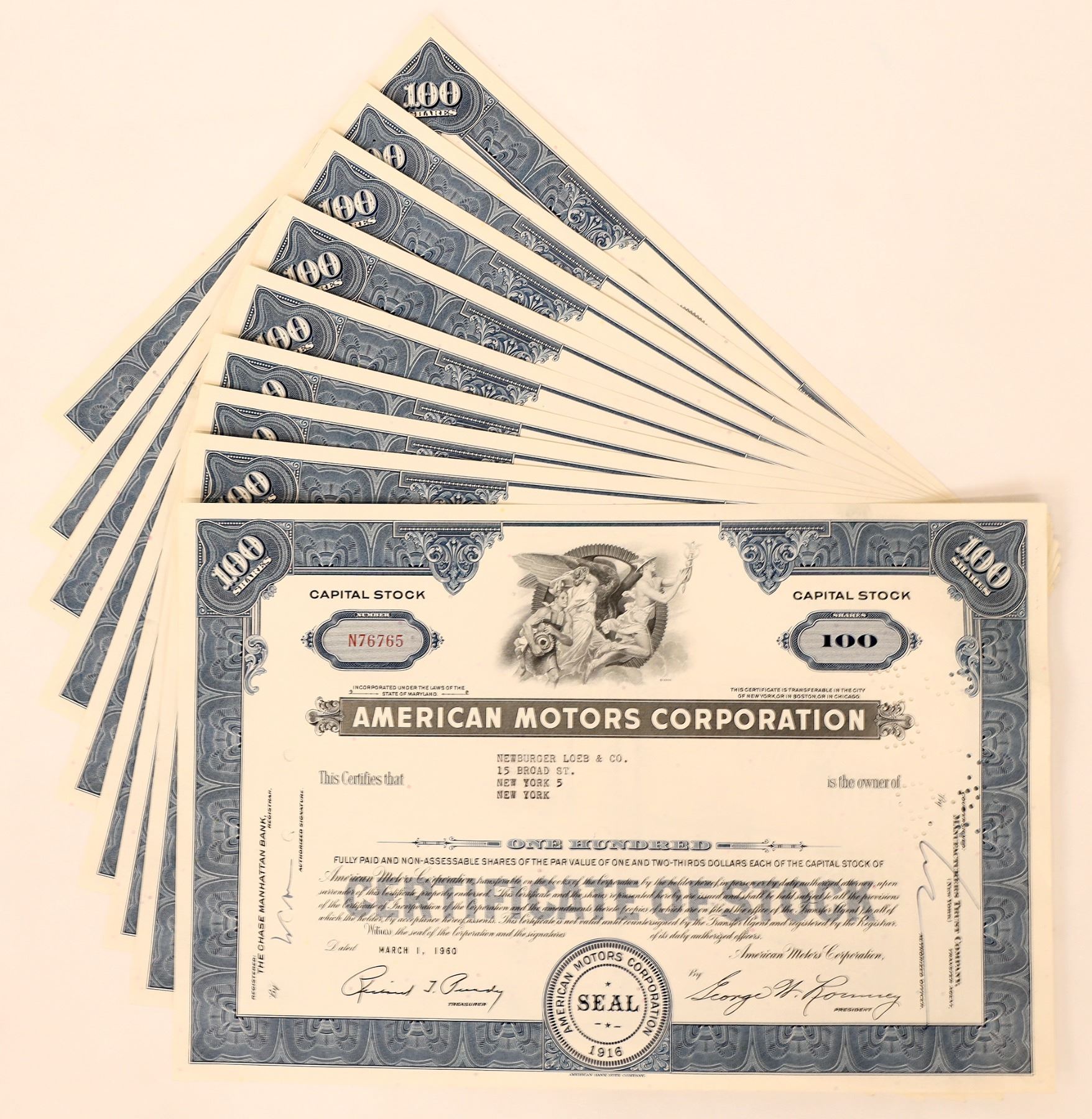 10 issued 1960 American Motors stock. Got a Gremlin, Pacer or AMX, then you need these! Ken Prag Collection