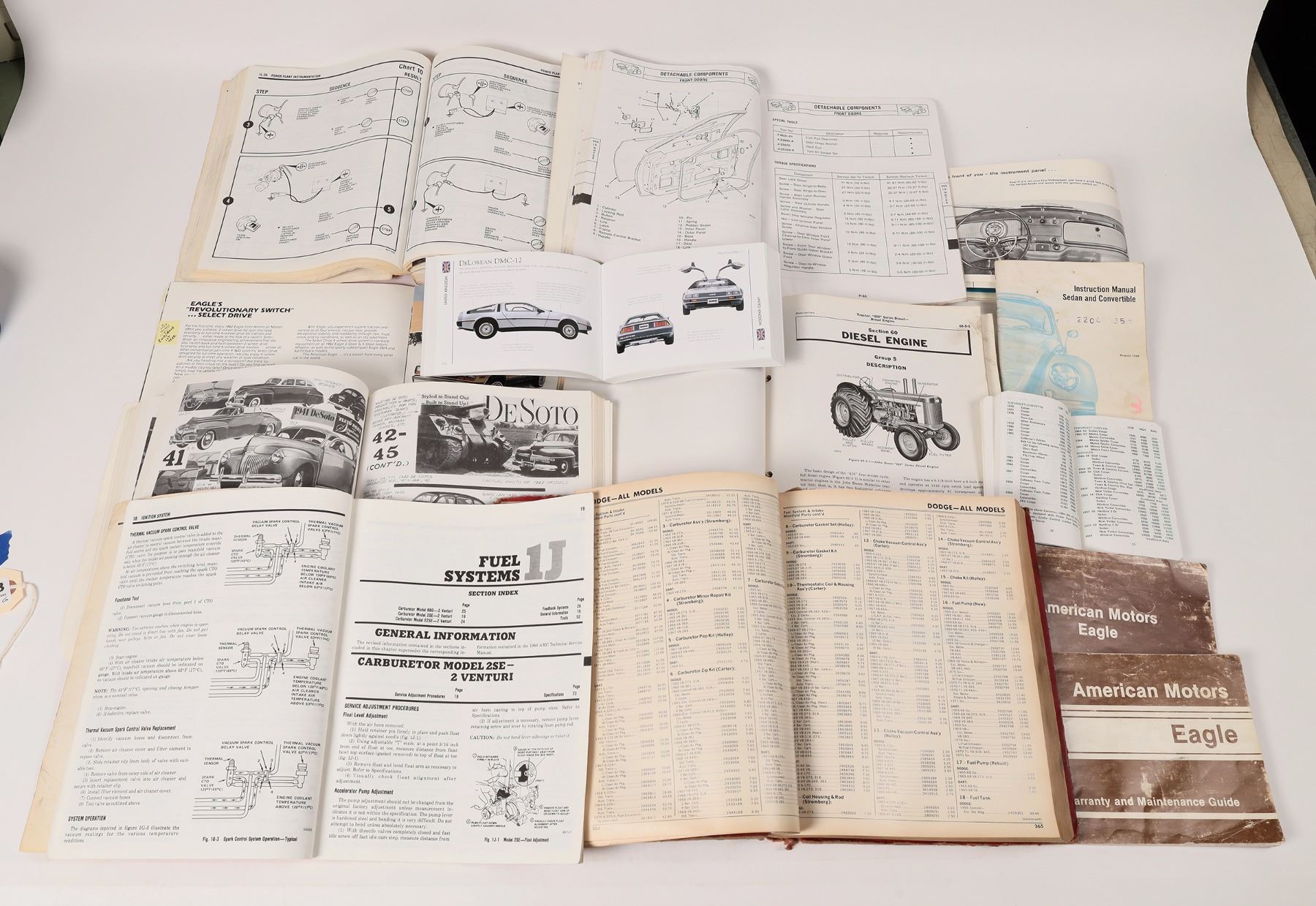 This lot contains two technical service manuals for American Motors Cars 1980 paperback cover in poor condition. A Mechanical Tine & Parts Guide 1971. An American Spotters Guide for 1940-1965 by Tad Burness pp. 358 paperback. A John Deere Diesel Tractor Service manual 1958 model 820 series. Paperback Classic Cars By Barnes & Nobles 2003 pp. 313.
