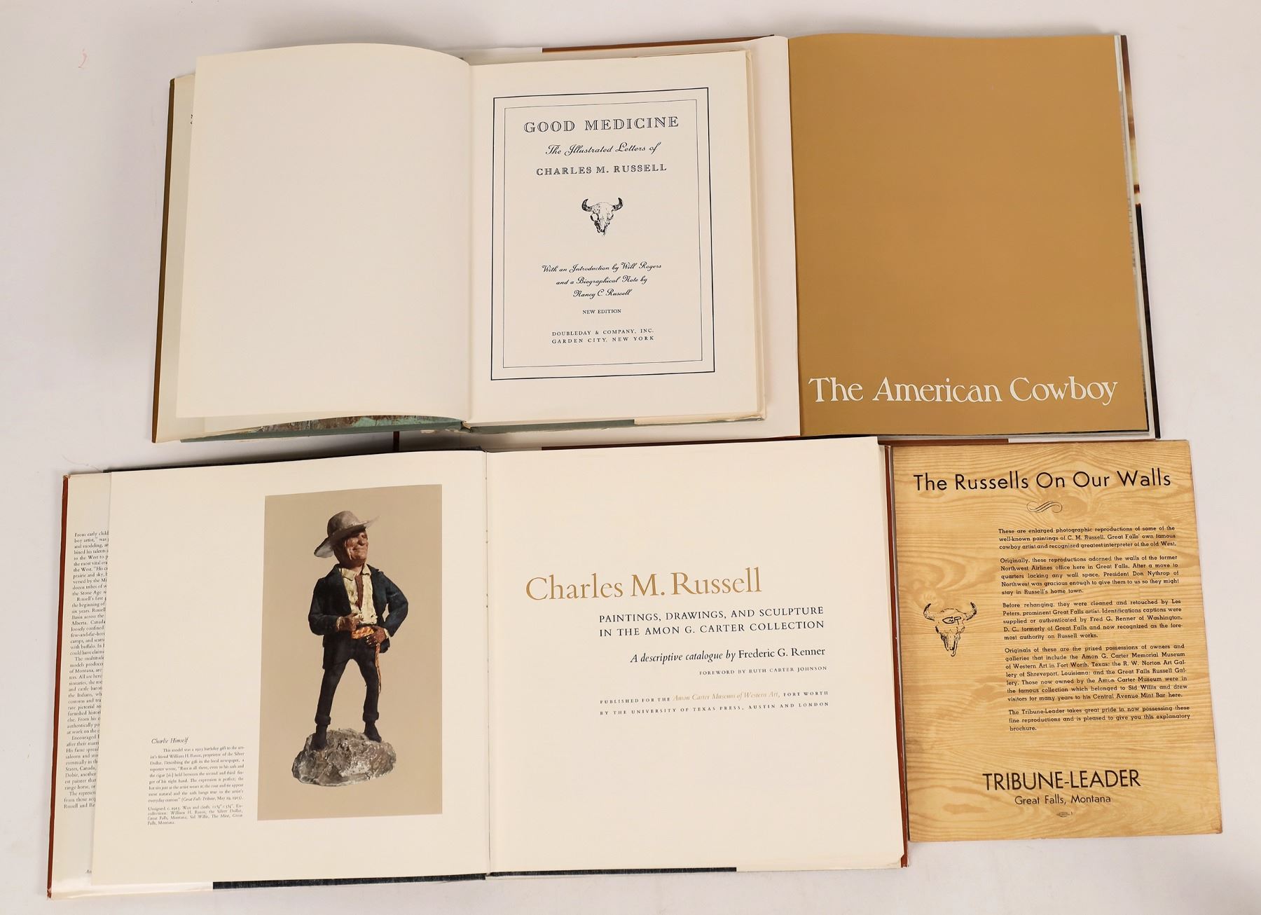 A) Charles M. Russell: Paintings Drawings, and Sculpture in the Amon G. Carter Collection. A descriptive catalogue by Frederic G. Renner. Foreword by Ruth Carter Johnson. Published for the Amon Carter Museum of Western Art, Fort Worth, by the University of Texas Press, 1966. 148 pages. 11.5 x 11.75 inches.