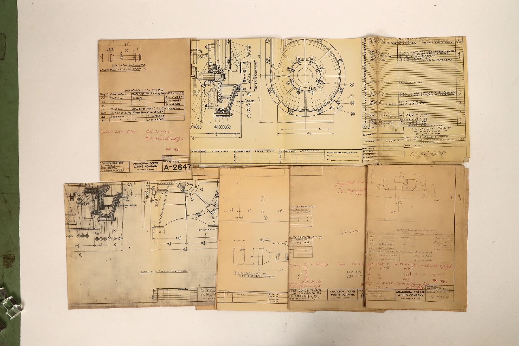 7 c. 1961 Anaconda Copper equipment mechanical drawings. 4x Copper concentrator, 2x Vacseal pump.