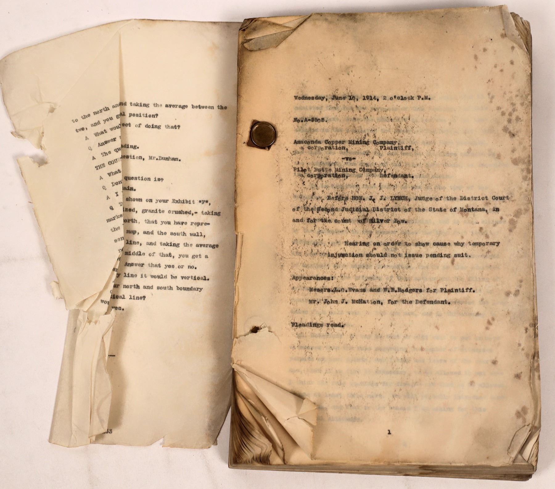 Anaconda Copper v. Pilot Butte Mining, 1914 lawsuit hearing. Bound, 1.25" thick.