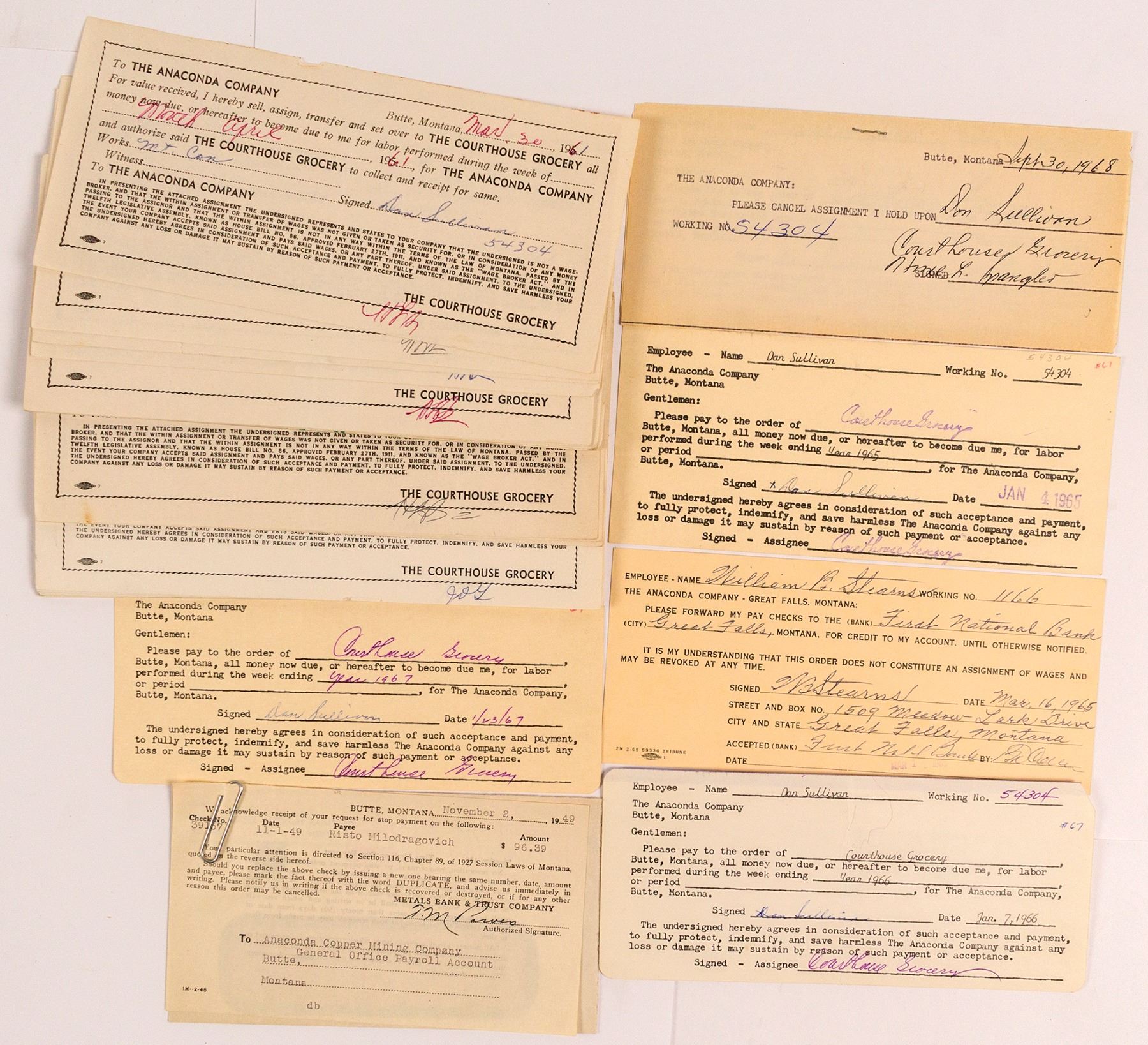Approx 70 Anaconda Copper Mining Company documents regarding The Courthouse Grocery c. 1950's to 1960's. Several are unused.
