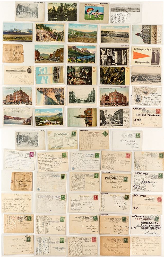 A lot of 29 postcards in total with 6 different postal cancels. Contains a variety of street views and smelter views. Includes an insured parcel receipt. (Svoboda Collection) City: Anaconda State: Montana Date: c1894-1942 HWAC# 35576