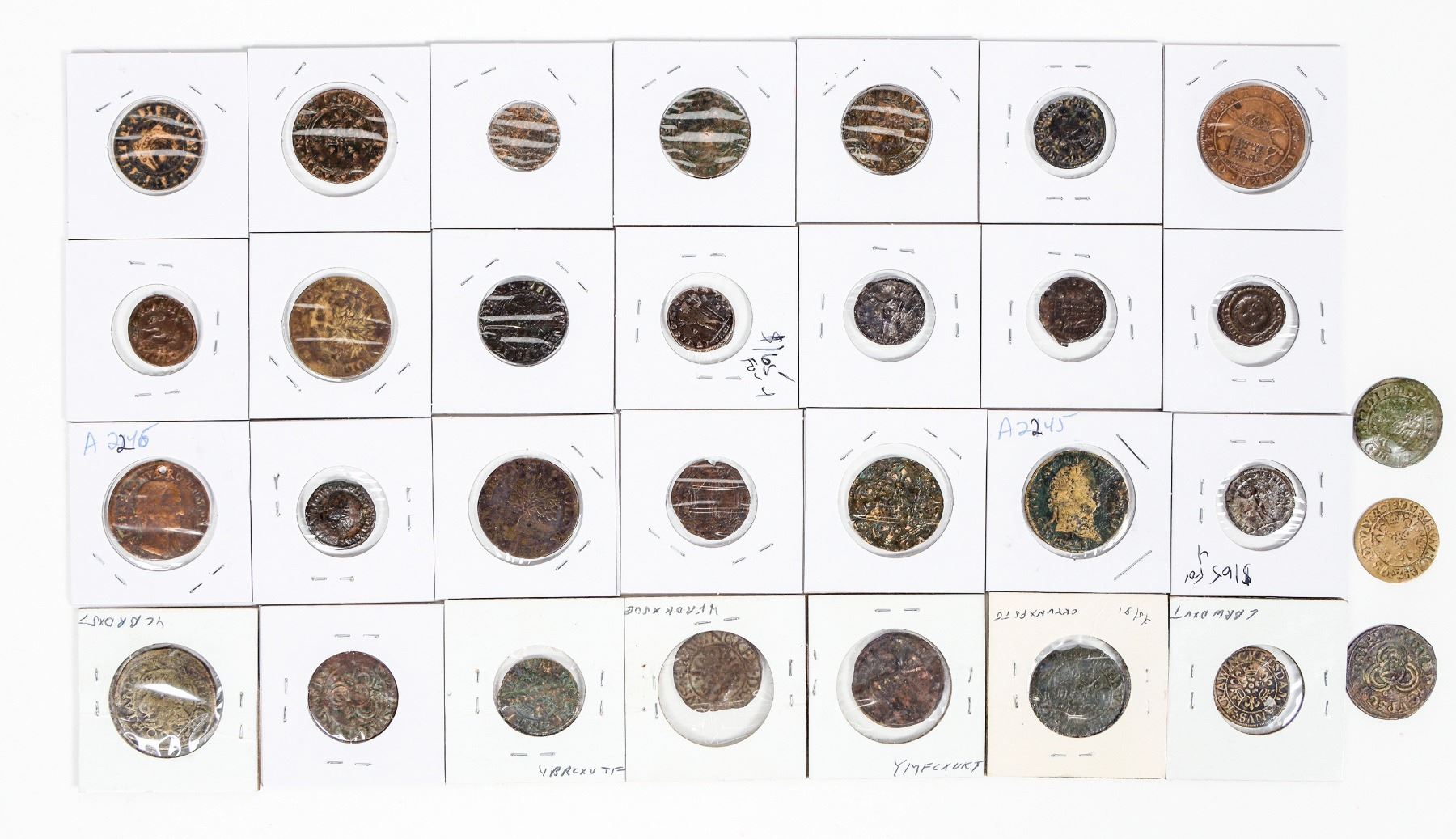 Group of fantastic ancient counters from the 1500s to the early 18th century. Many appear to be modeled after ancient coins and others from their own contemporary era. 30 pieces.