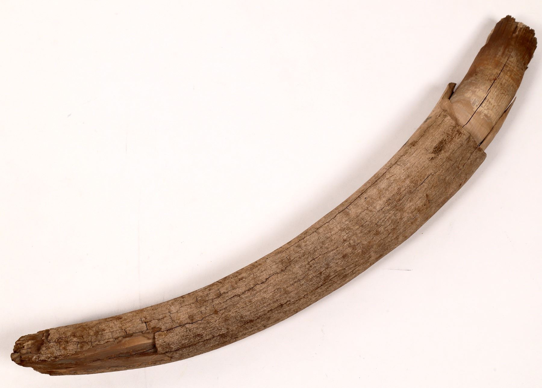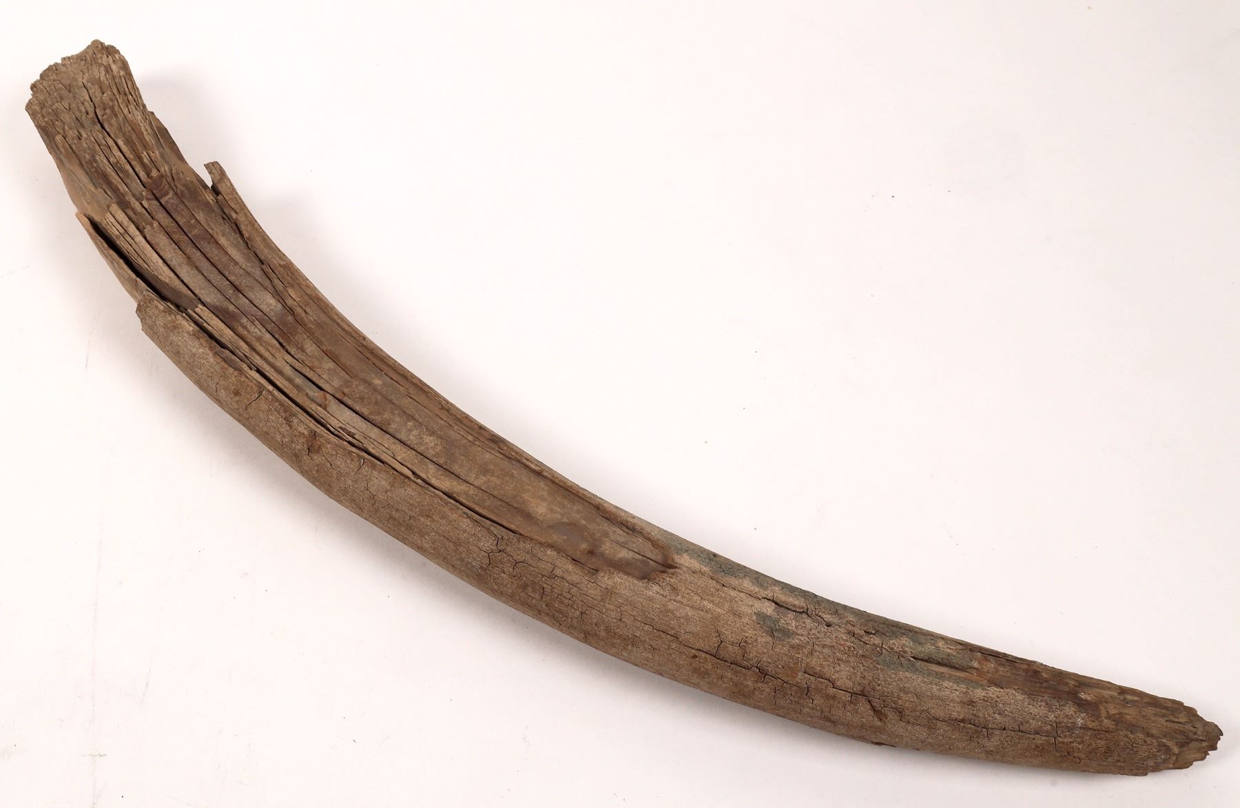 Ancient mammoth partial tusk. 18.5" with some delamination, mostly on 1 side.