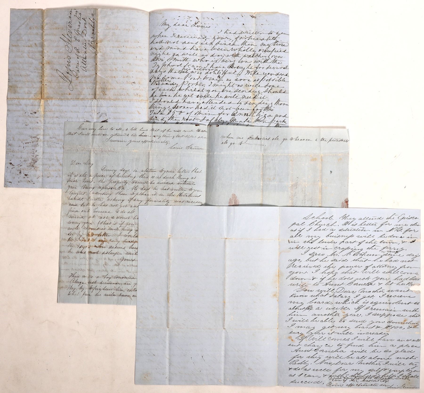 This lot of family letters are written by Louis W. Stevenson before and during the Civil War. An autographed card and tintype photo are also included. L.W. Stevenson was a Private in the 7th New York Militia in 1861 and later a 2nd Lt. in the 176th New York Infantry. He describes army life in his war years letter. The most compelling letter to his aunt is dated Nov. 10th, 1865 where he personally witnesses Major Henry Wirz's hanging in great detail. He would have a personal interest in this hanging after being wounded and surviving imprisonment. "Wirz's behavior in the coolest manner. He walked with a firm step......conversation with his counsel in a quite, cool manner." He would also write" "The day was lively___ the God(d)ess of Liberty__ looked down on him from the dome of the Capitol, very affirmingly which added solemnly to the occasion."