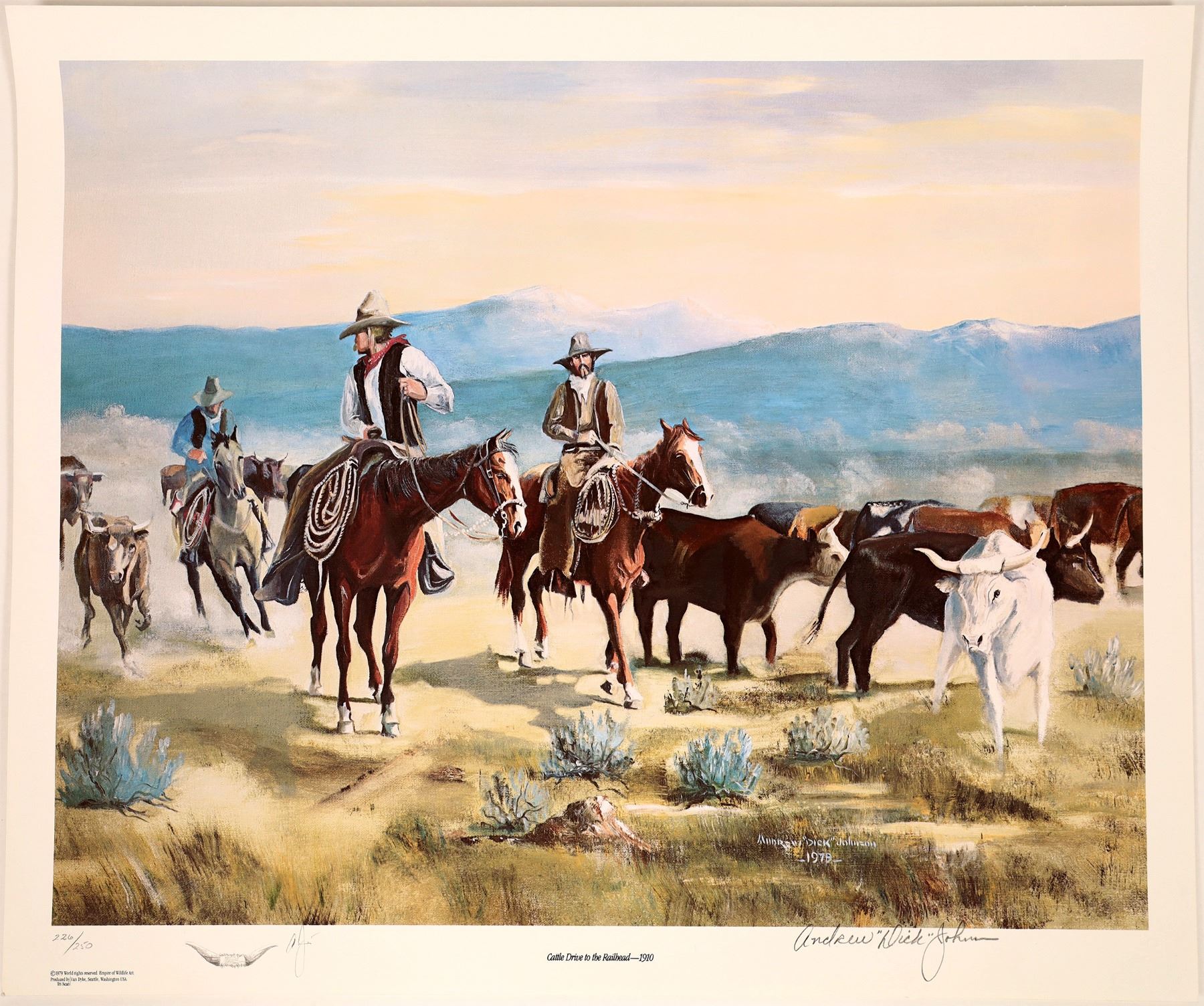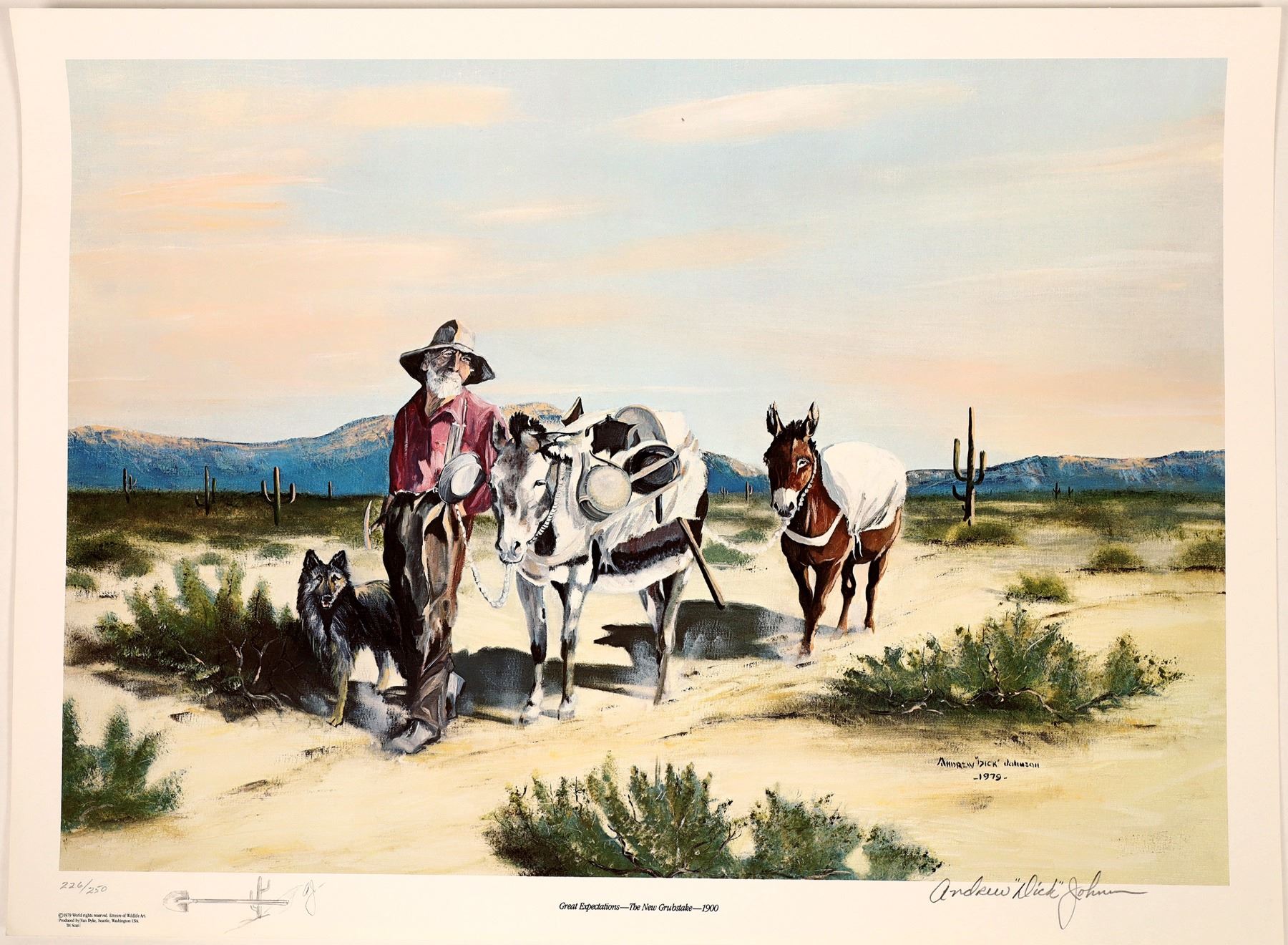 This is a collection of 4 lithographs by renowned Nevada cowboy artist, Andrew "Dick" Johnson.