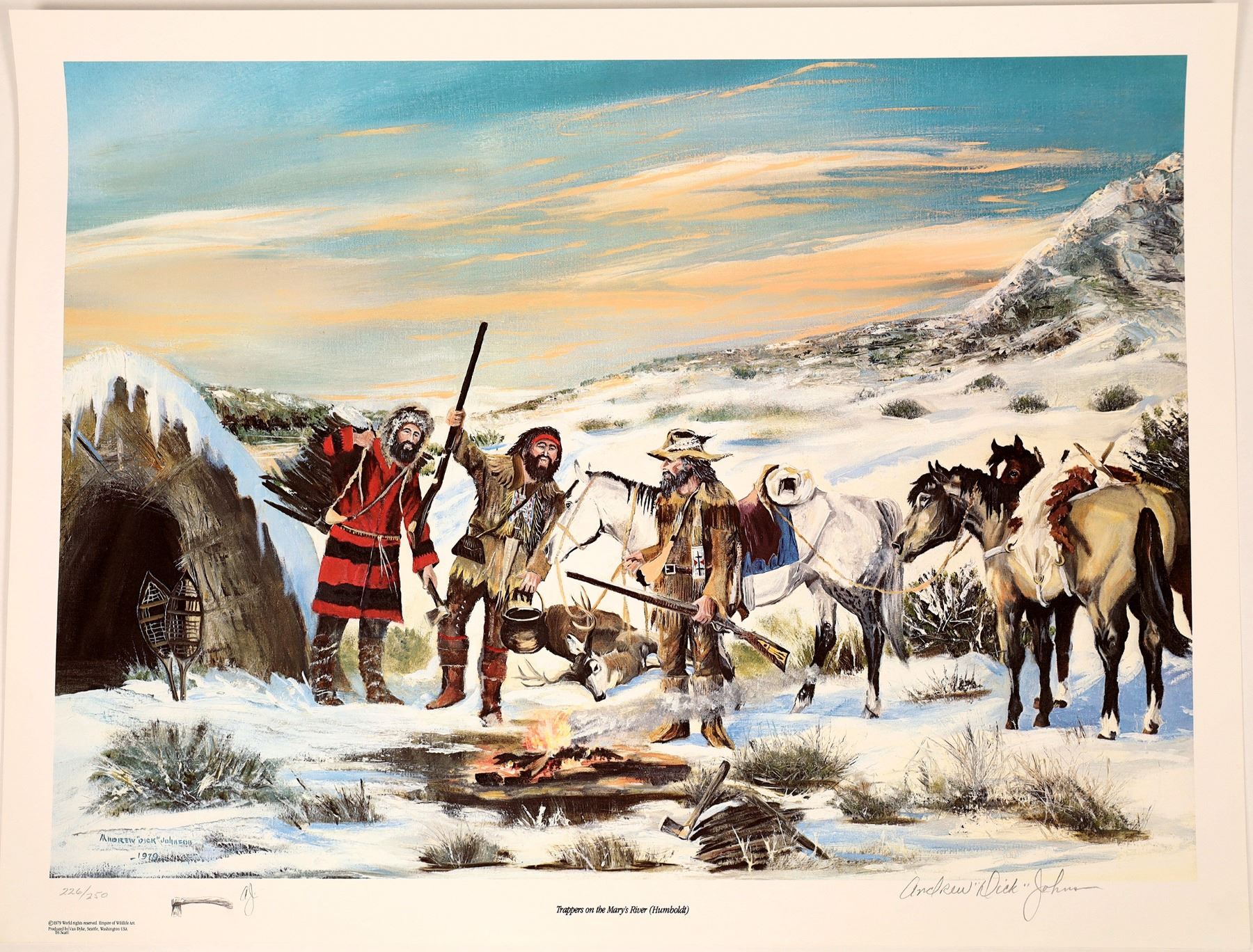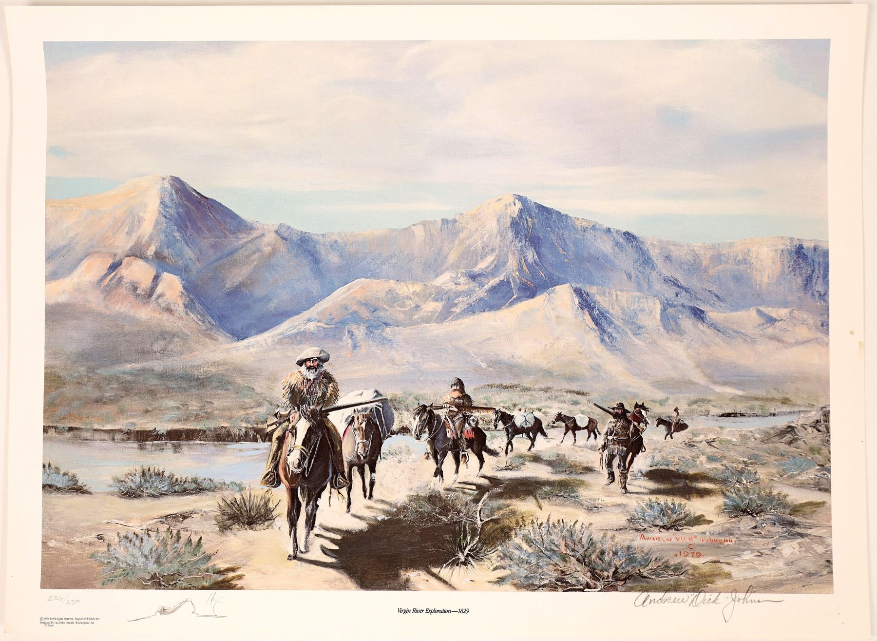Works include "Trappers on the Mary's River (Humboldt)," "Cattle Drive to the Railhead, 1910" and "Virgin Exploration-1829."