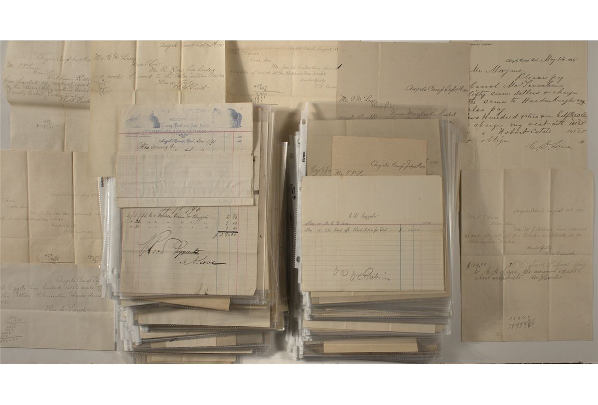 Just shy of 200 pieces. Follow the Utica Chlorination Mill as their need for lumber and hauling that lumber tells a story. Learn the names of the teamsters. ALSO a large group of hauling receipts for sulphurets (gold bearing ore) to the Utica Mill mostly from the Consolidated Eureka in Sonora. On August 10, 1895 M. J. Curtain hauled 26,249 pounds of sulphurets and on September 23, 1898 G. B. Gozzolo hauled 1,618 1/4 cords of wood. There is definitely a story waiting to be told here.City: Angels CampCounty: CalaverasState: CADate: