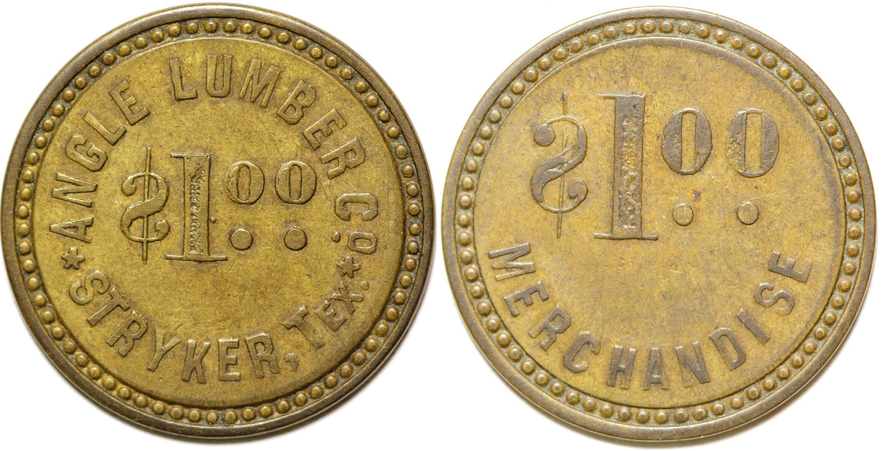 $1.00 merchandise token. Unknown location. State: Texas City: Stryker Date: HWAC# 85370