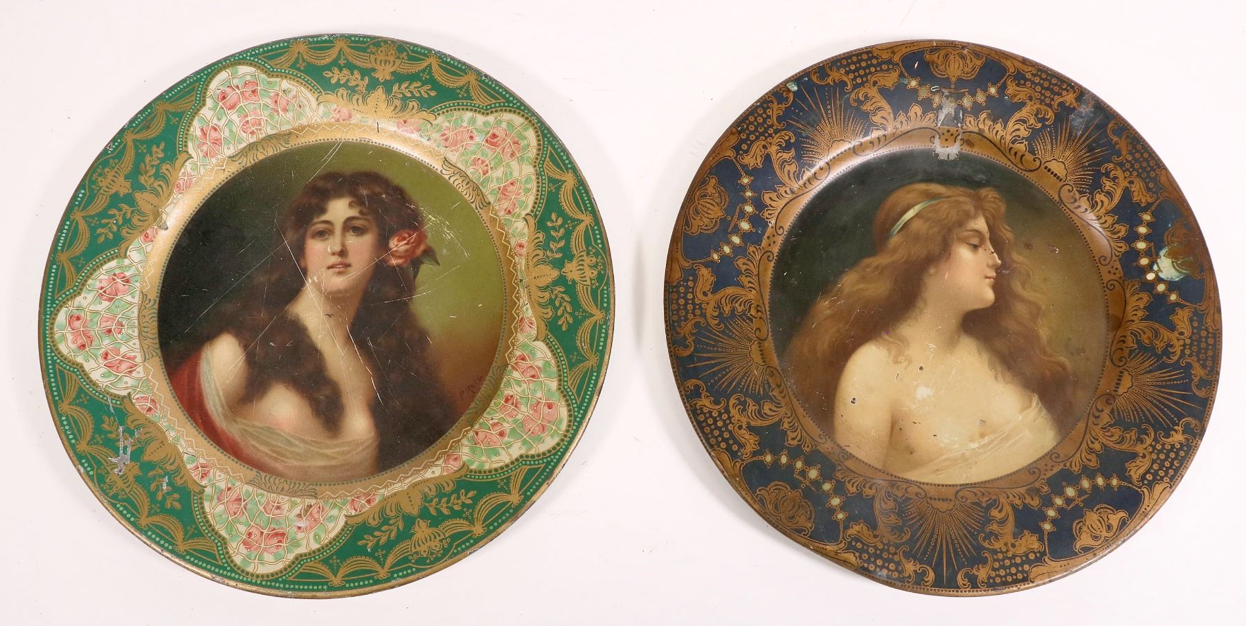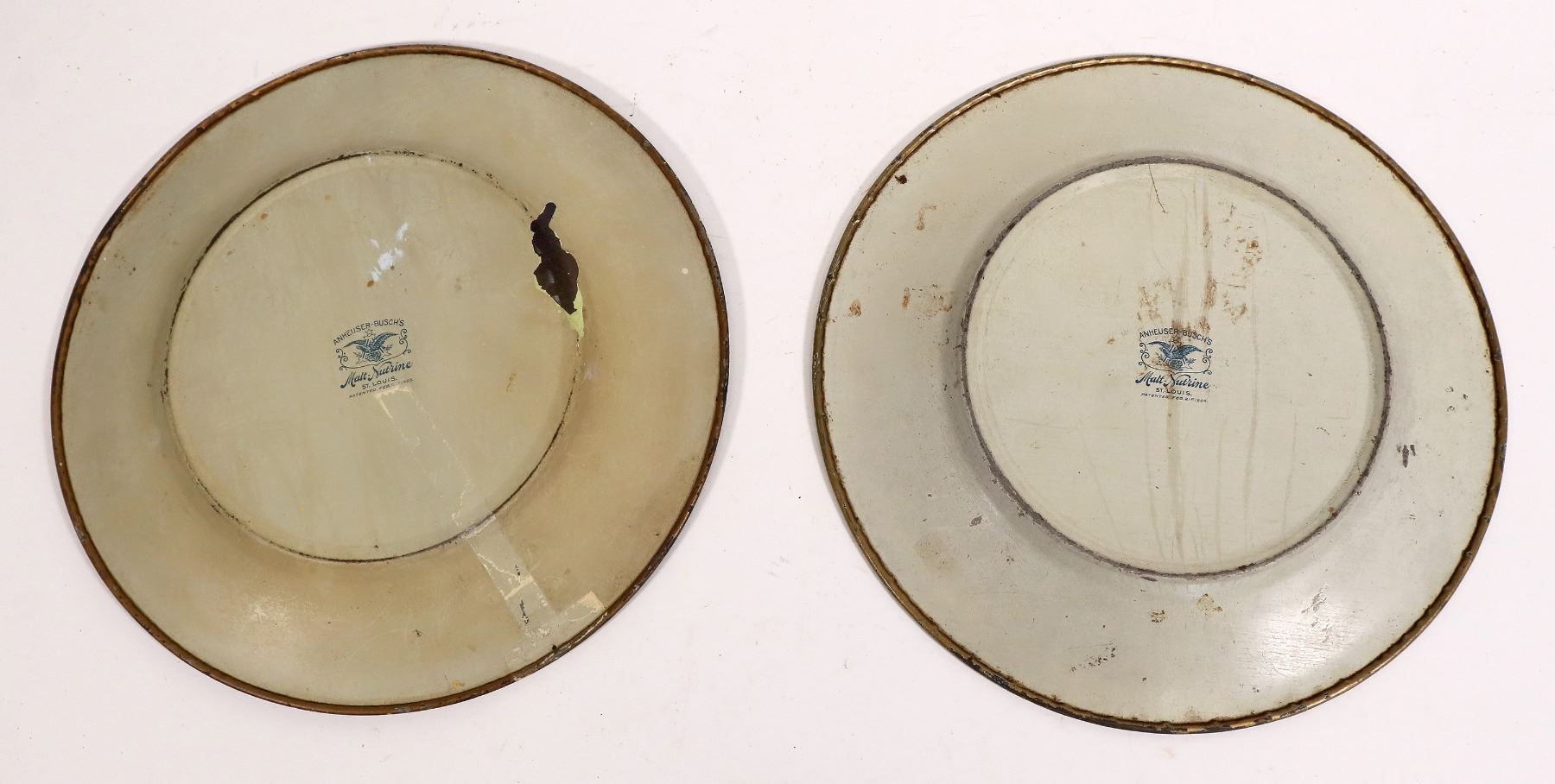 Two Anheiser Busch's Malt-Nutrine Portrait Advertising Promotion Single serving trays. St. Louise Tin Plates Advertising Malt-nutrine beverages produced from 1895-1942 in St. Louise, MO. Made by the Beach Co. Patented on February 21st, 1905. These are the only two tray made for this brewing promotion. Customers had to mail twelve red bottle caps with fifteen cents in stamps or coins to cover the postage to receive their free promotional tray. 10" diameter. See photos for condition. St. Louis Missouri patented 1905