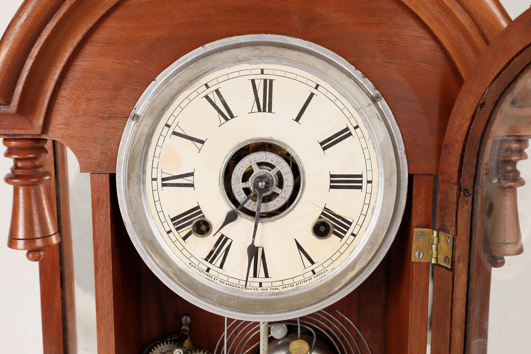 This company was in business from around 1850 to 1930. Clock measures 24"x 14" and appears to need a new spring & mechanism. Fixed up, it could be a nice piece.