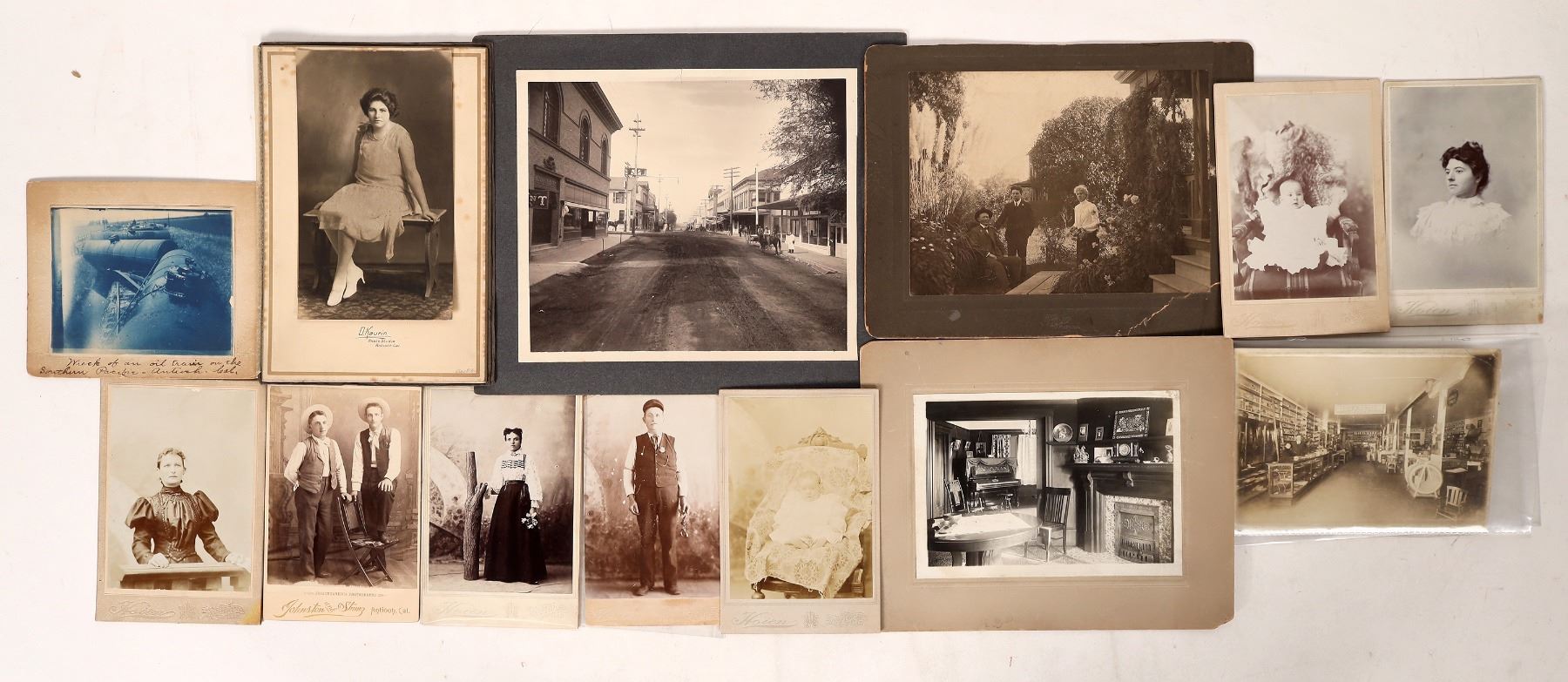 Antioch California photo group (13) Early photos 5"x 7" to larger, show life in this one time mining town, located in the San Francisco Bay Area. There are several portraits and scnic shots of the downtown area, including one of Palace Drugs. Several were taken by Hoion Photography as well as Johnston & Stint. A nice reflection of life in the early 1900s.
