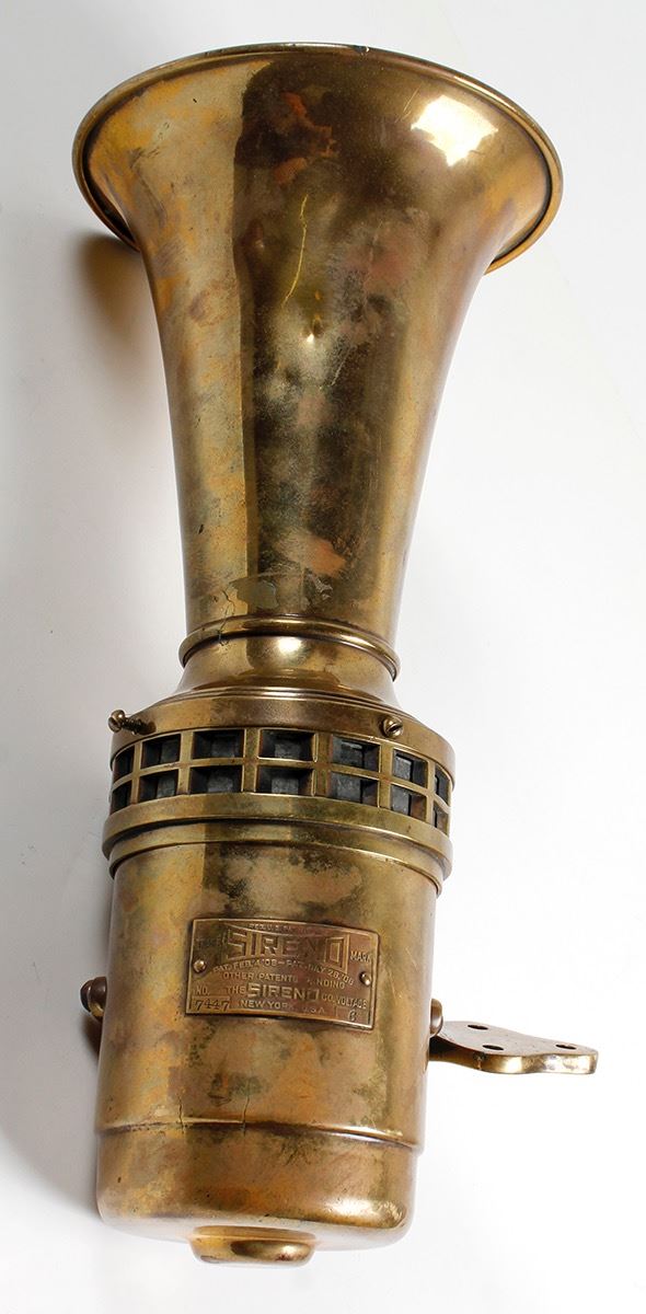 Original brass car horn. Made by The Sireno, New York. Number 7447, patented July 28, 1908. Polished brass, very nice condition. Date: Location: HWAC# 64452
